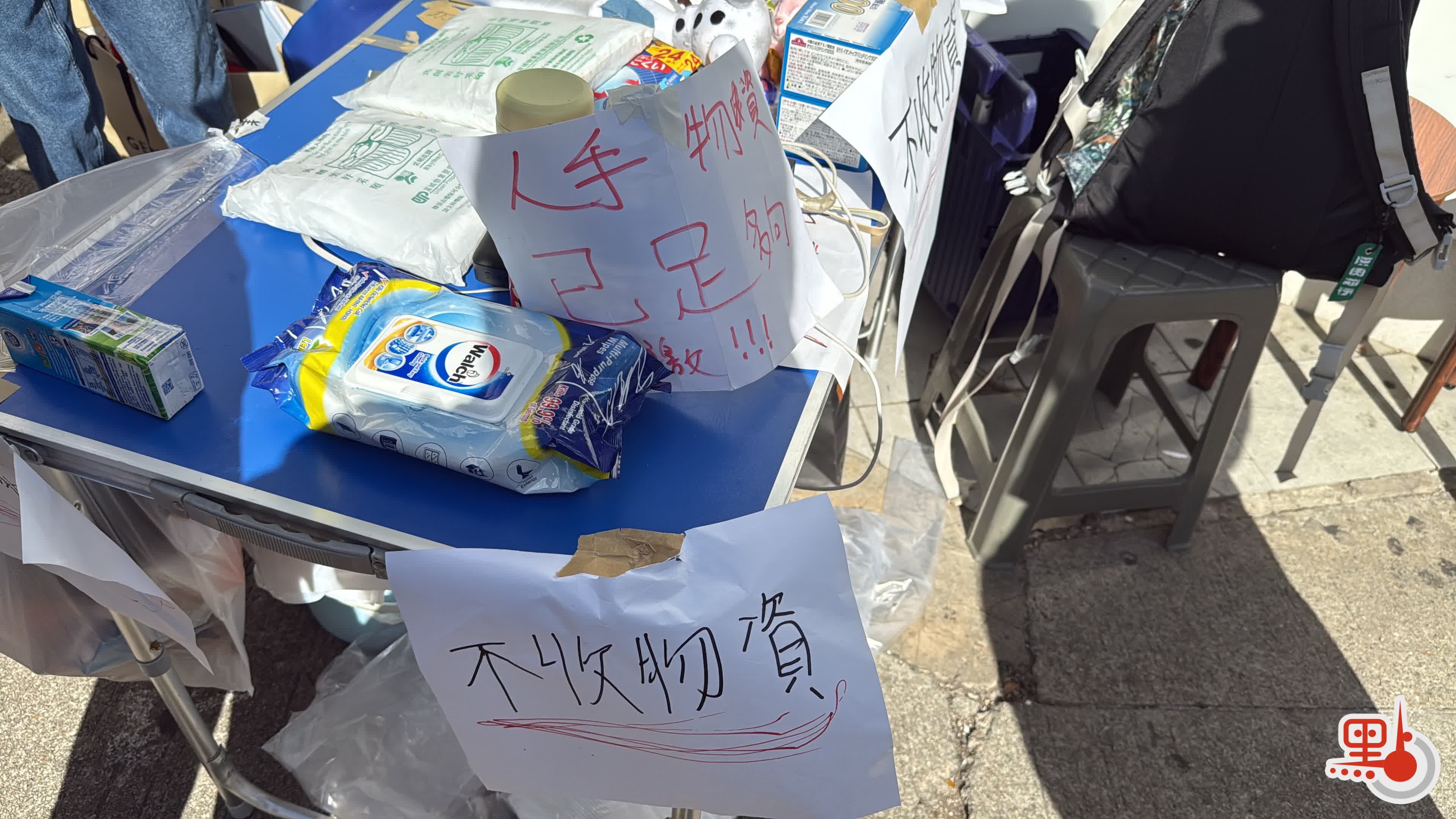 惟該處物資已足夠,鄭小姐打算看看是否有其他地方可以接收物資。該臨時物資站的義工向記者表示,目前正在「清場」,她已聯繫NGO機構查詢是否接受物資。