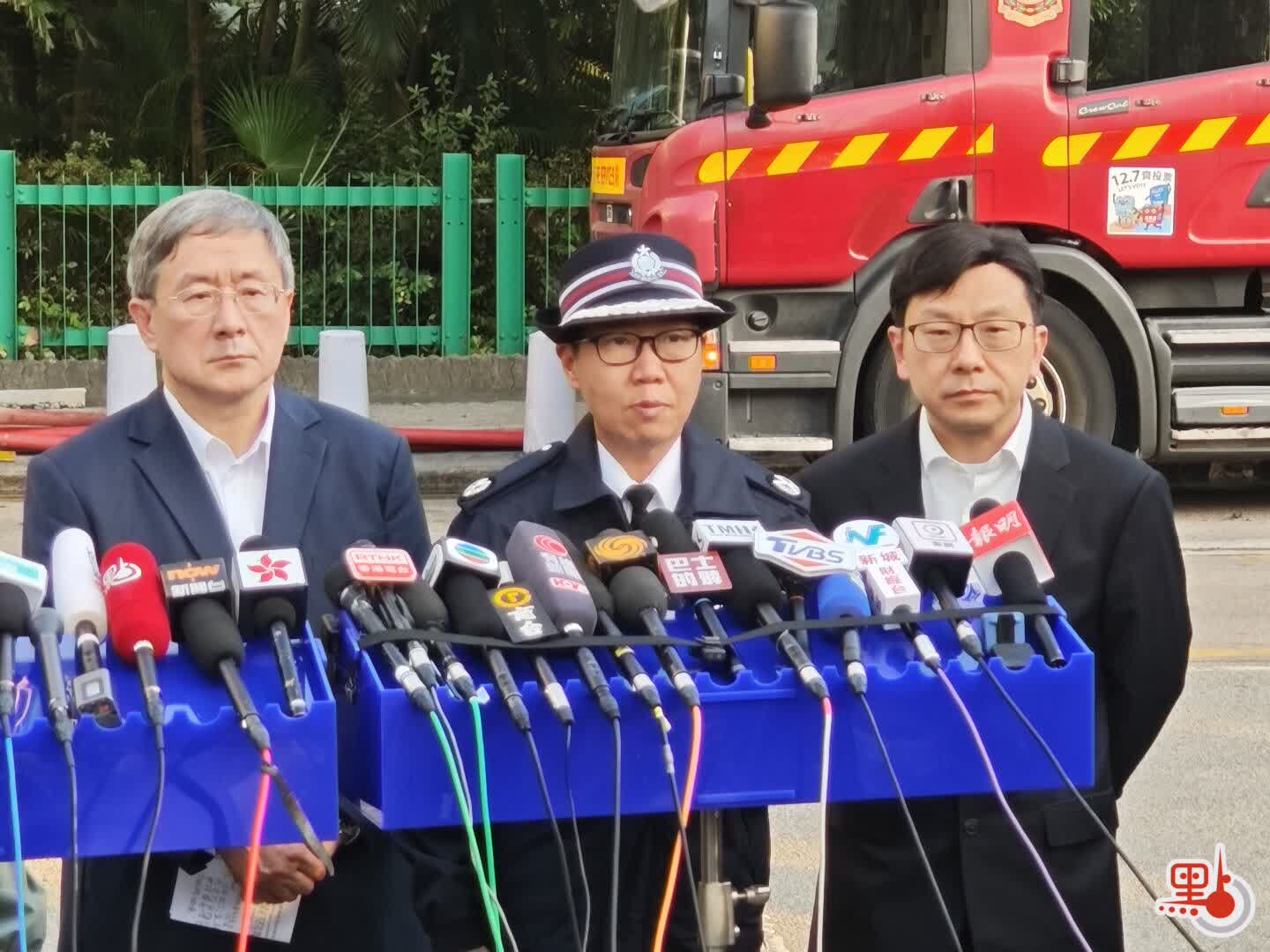 【點新聞報道】今日(29日)下午,政務司副司長卓永興、民政及青年事務局局長麥美娟、勞工及福利局局長孫玉菡、警務處新界北總區指揮官助理處長林敏嫻、警務處傷亡查詢中心主管總警司曾淑賢等政府官員,在宏福苑火警現場視察,向相關人員了解情況後見記者。