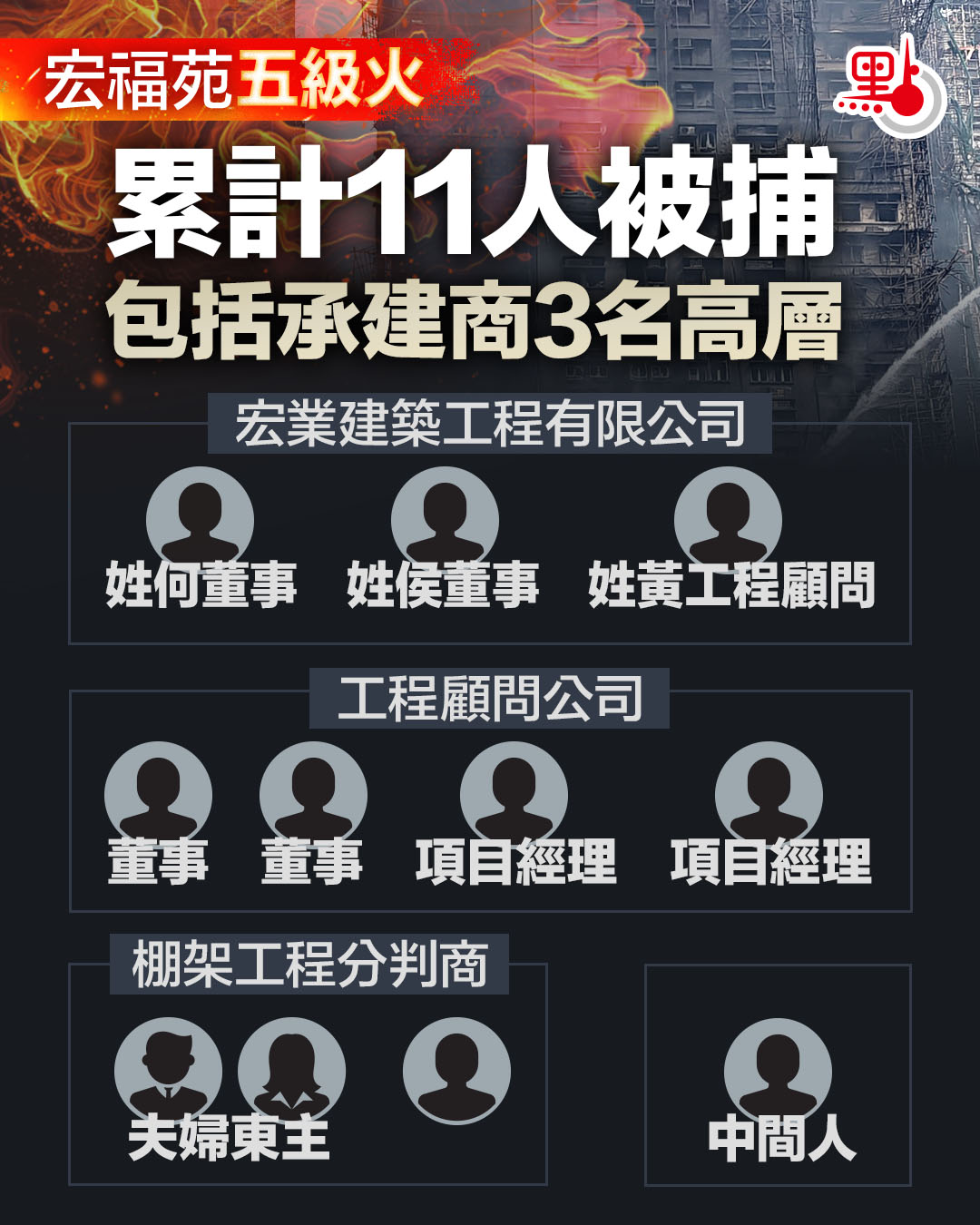 (有片)宏福苑五級火|累計11人被捕 包括承建商3名高層