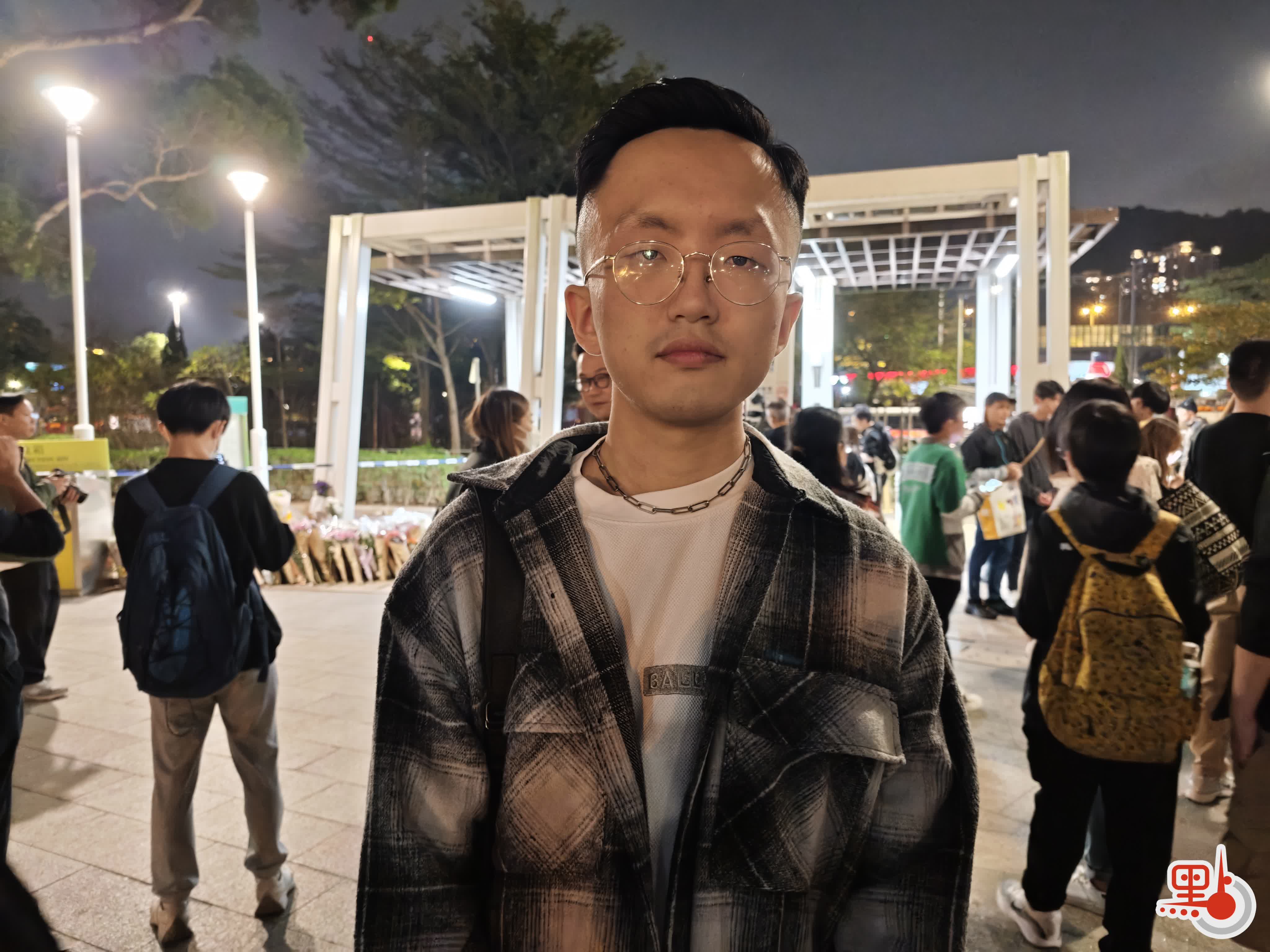 市民James告訴記者,他排隊近半小時才成功完成獻花。他回憶,自己本想前往庇護中心義務服務,來到現場後卻發現了獻花隊伍,於是便加入其中。排隊時,他一直心情沉重,希望透過鮮花和祈禱,紀念本次的遇難者。看到這麼多港人不約而同地聚集獻花,他備受感動,「我哋香港人其實係好有愛、好團結嘅,希望呢份力量可以支持到一班消防員、遇難者家屬。」