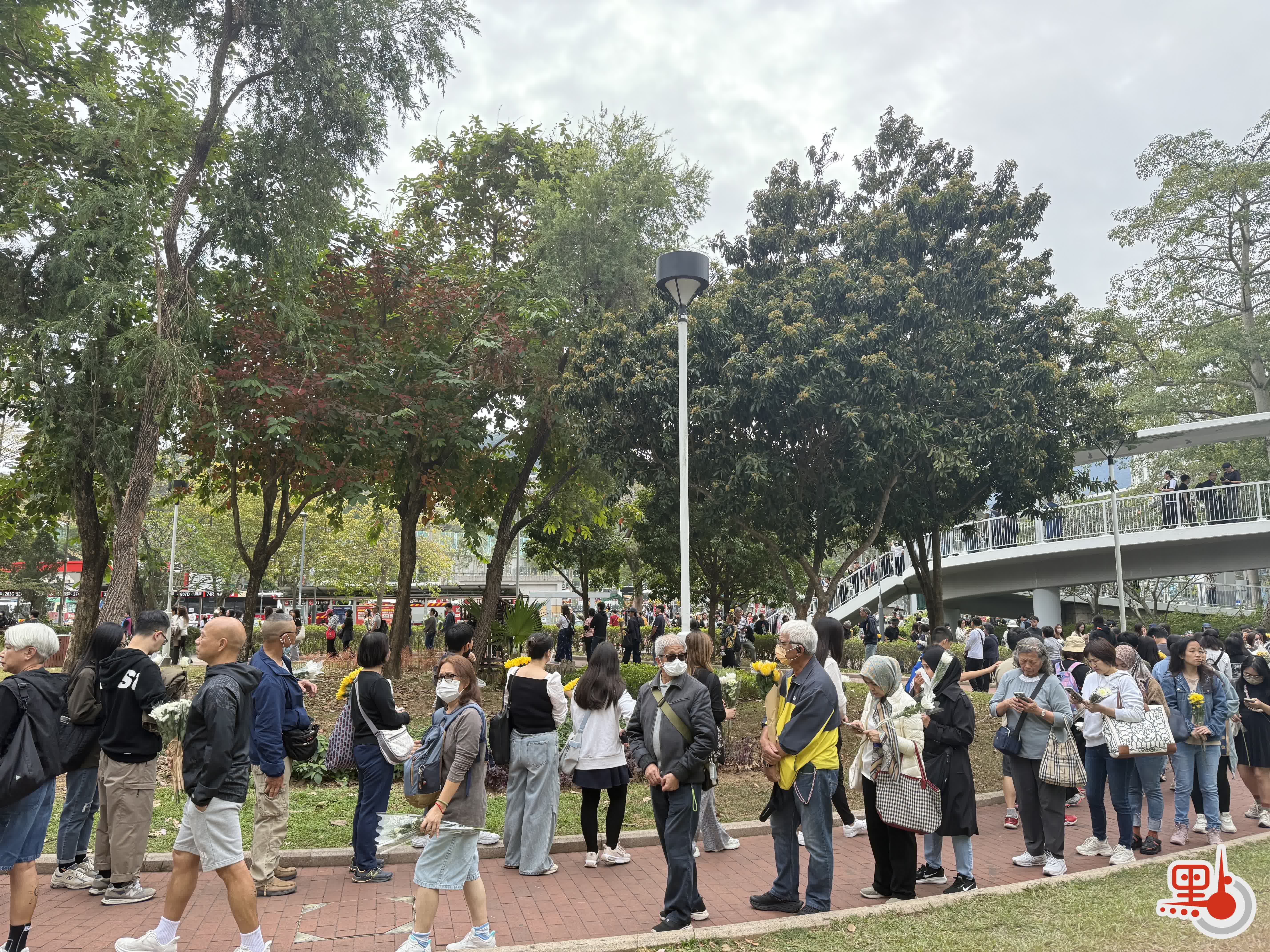 (有片)宏福苑五級火|獻花弔唁人群排長龍 市民:感到無比痛心 冀生者健康平安