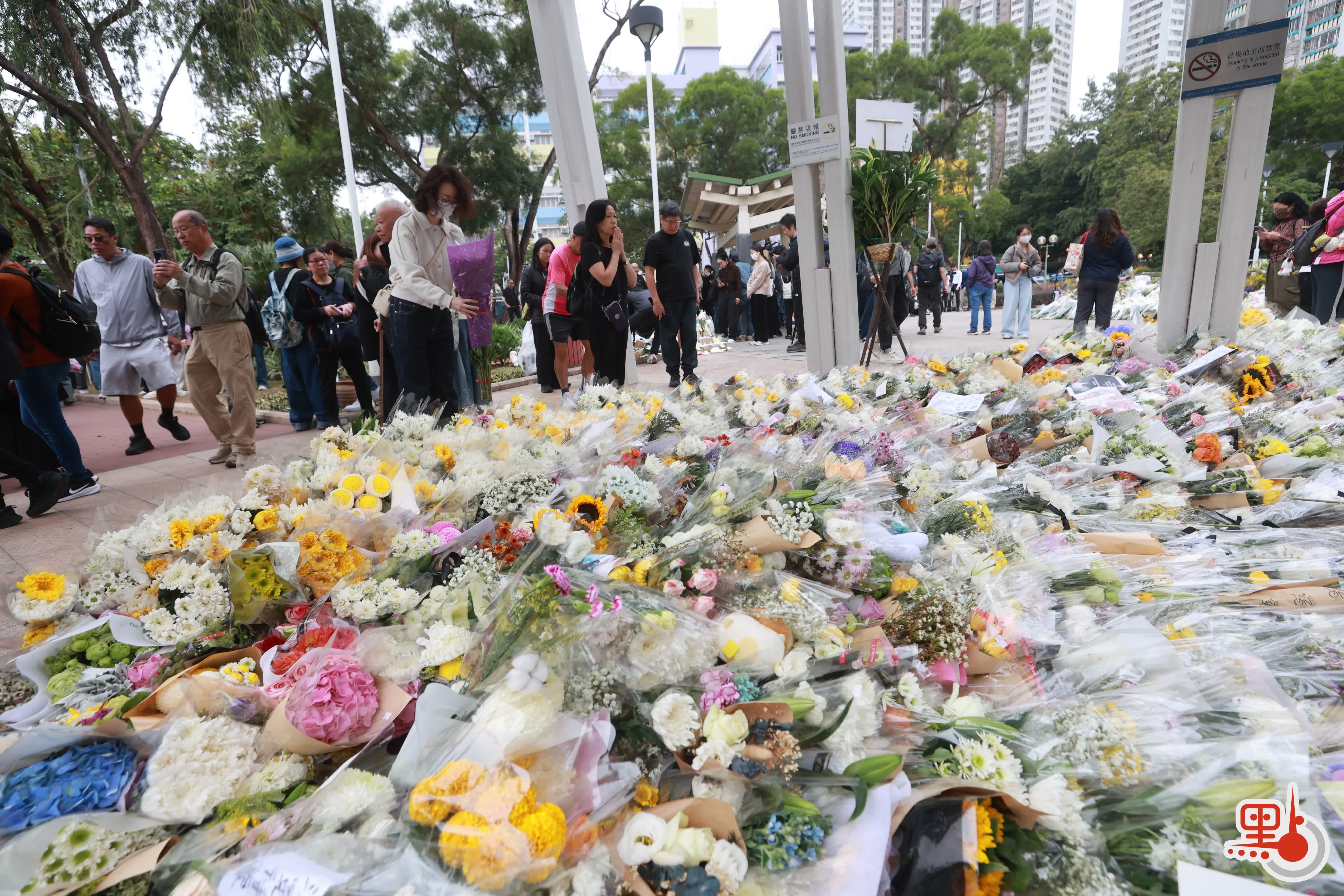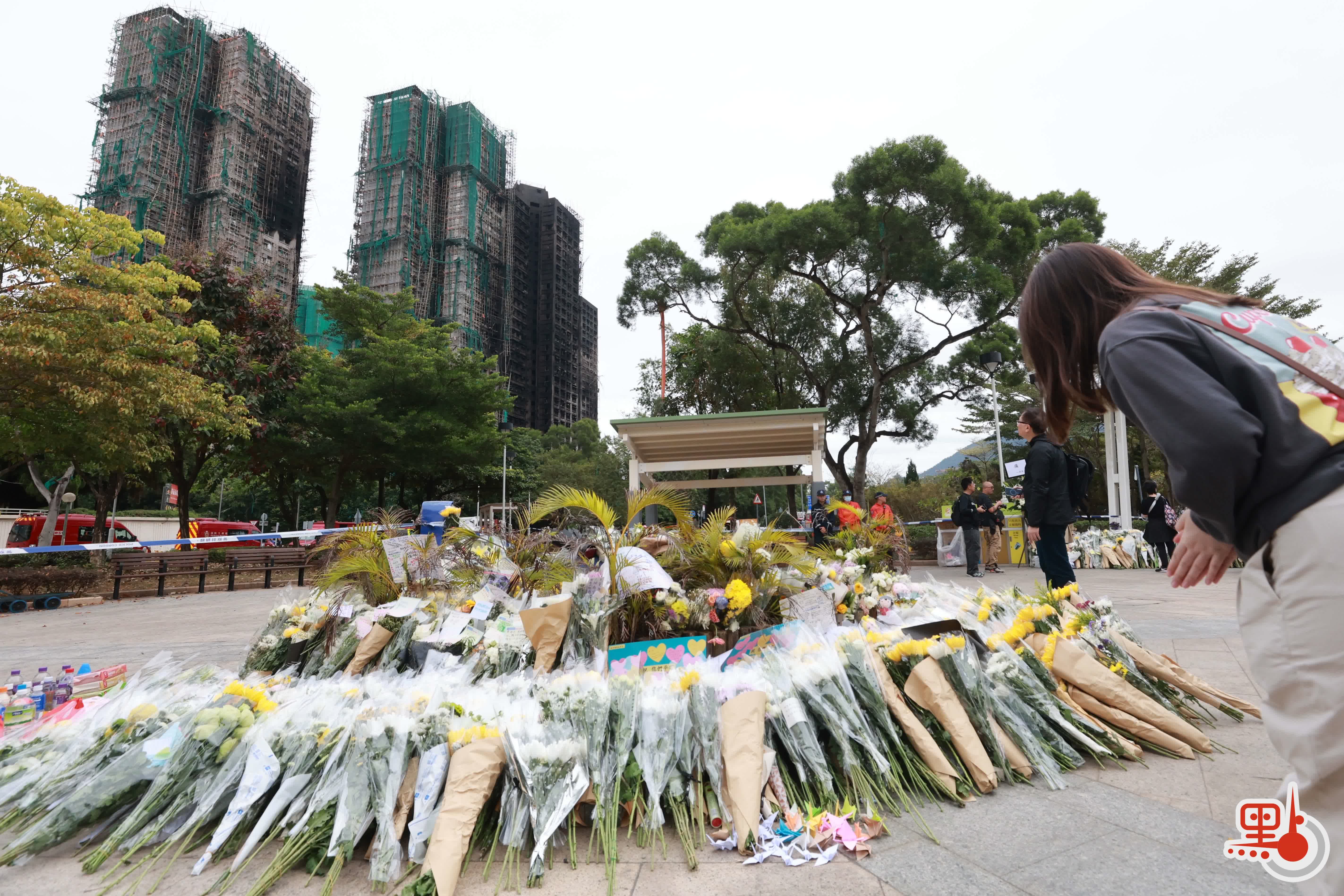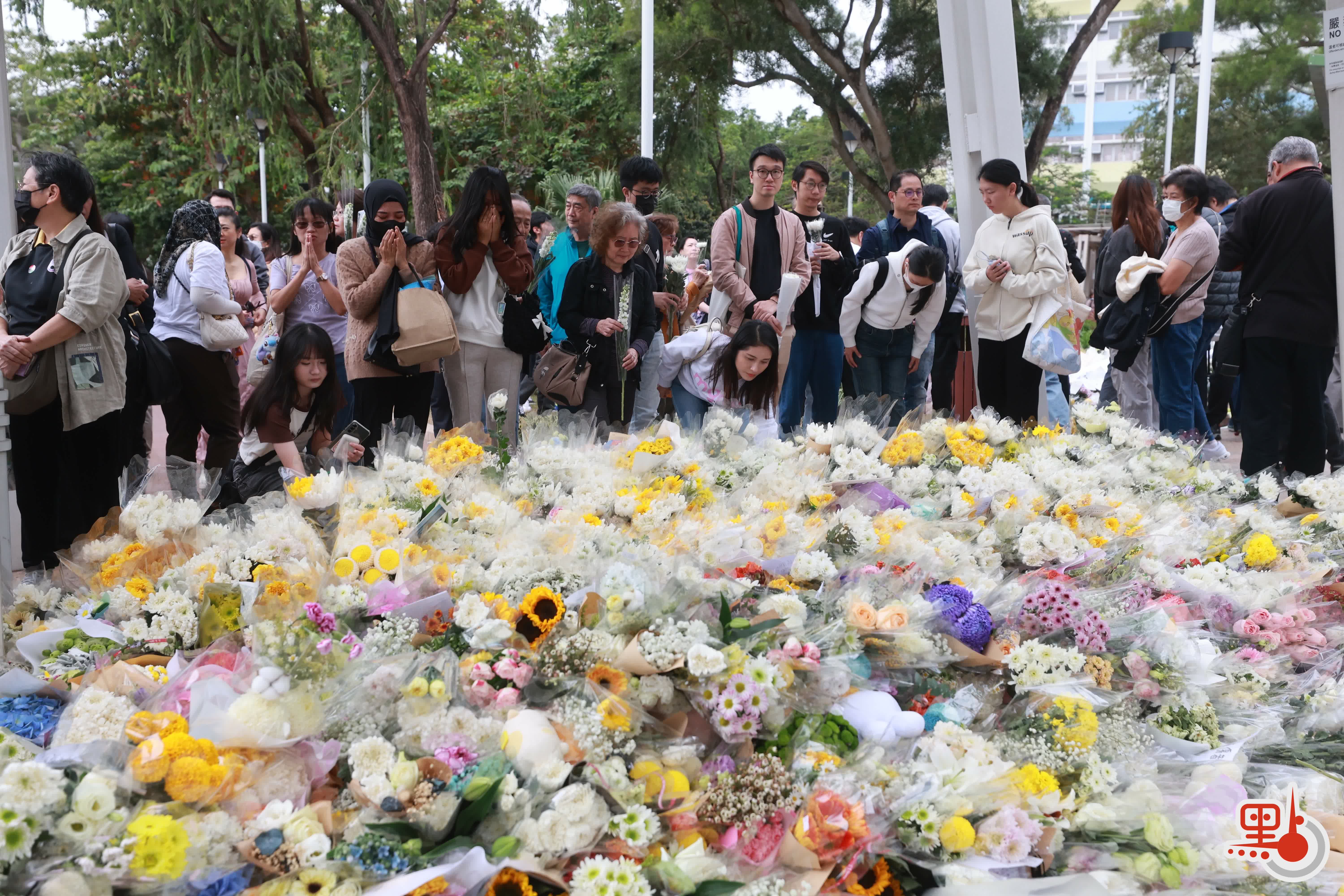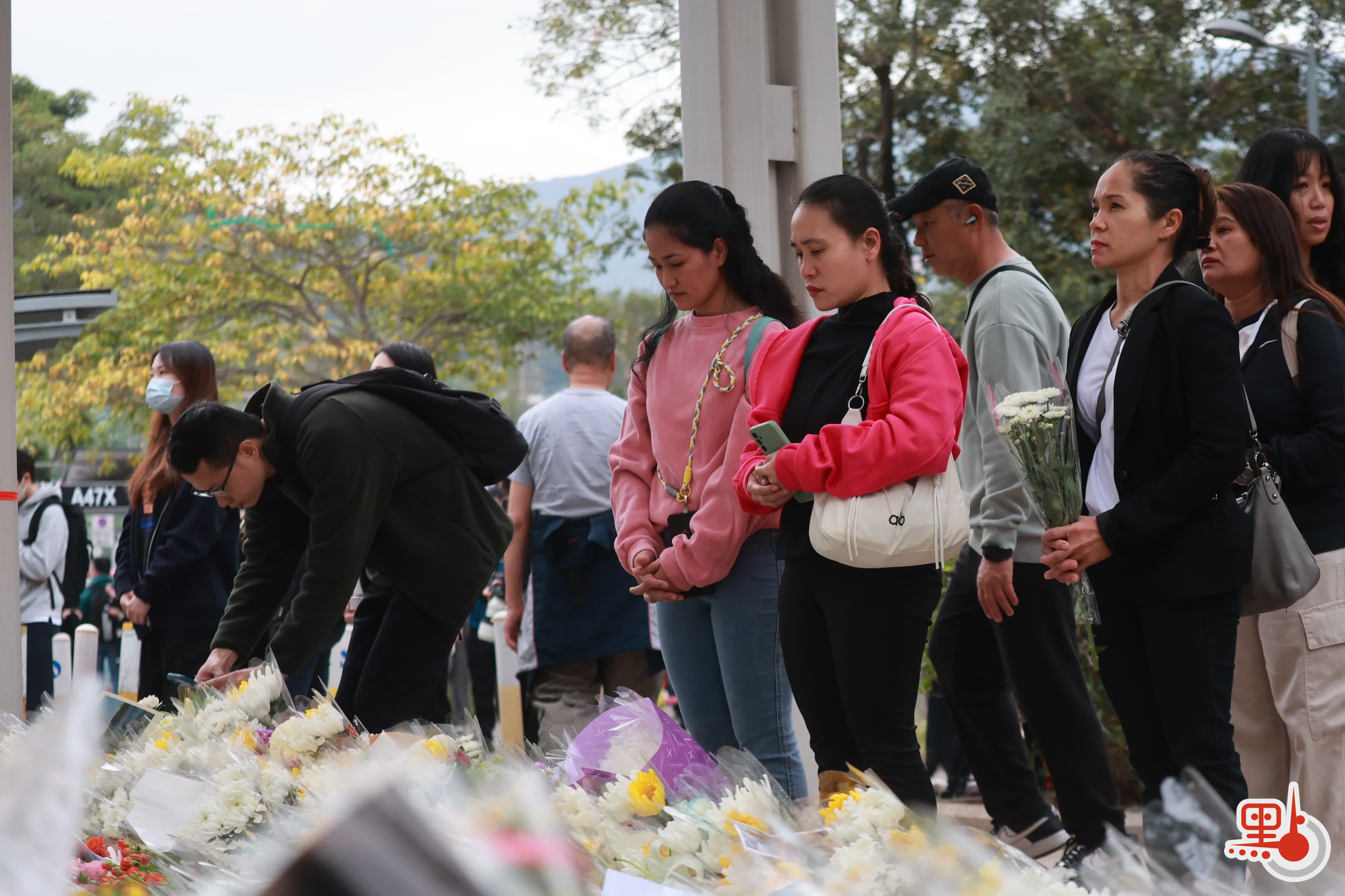 【點新聞報道】上周三(26日)在大埔宏福苑發生的五級大火,至今已釀成128人死亡,83人受傷及150人下落不明。在今日(11月30日)上午,前往大埔悼念的市民絡繹不絕,至少多達1000人,人龍一度延綿1.5公里,並伸延至東昌街社區會堂。他們在廣福休憩處放下鮮花,並寫上心意卡哀悼罹難者,願逝者能夠安息。