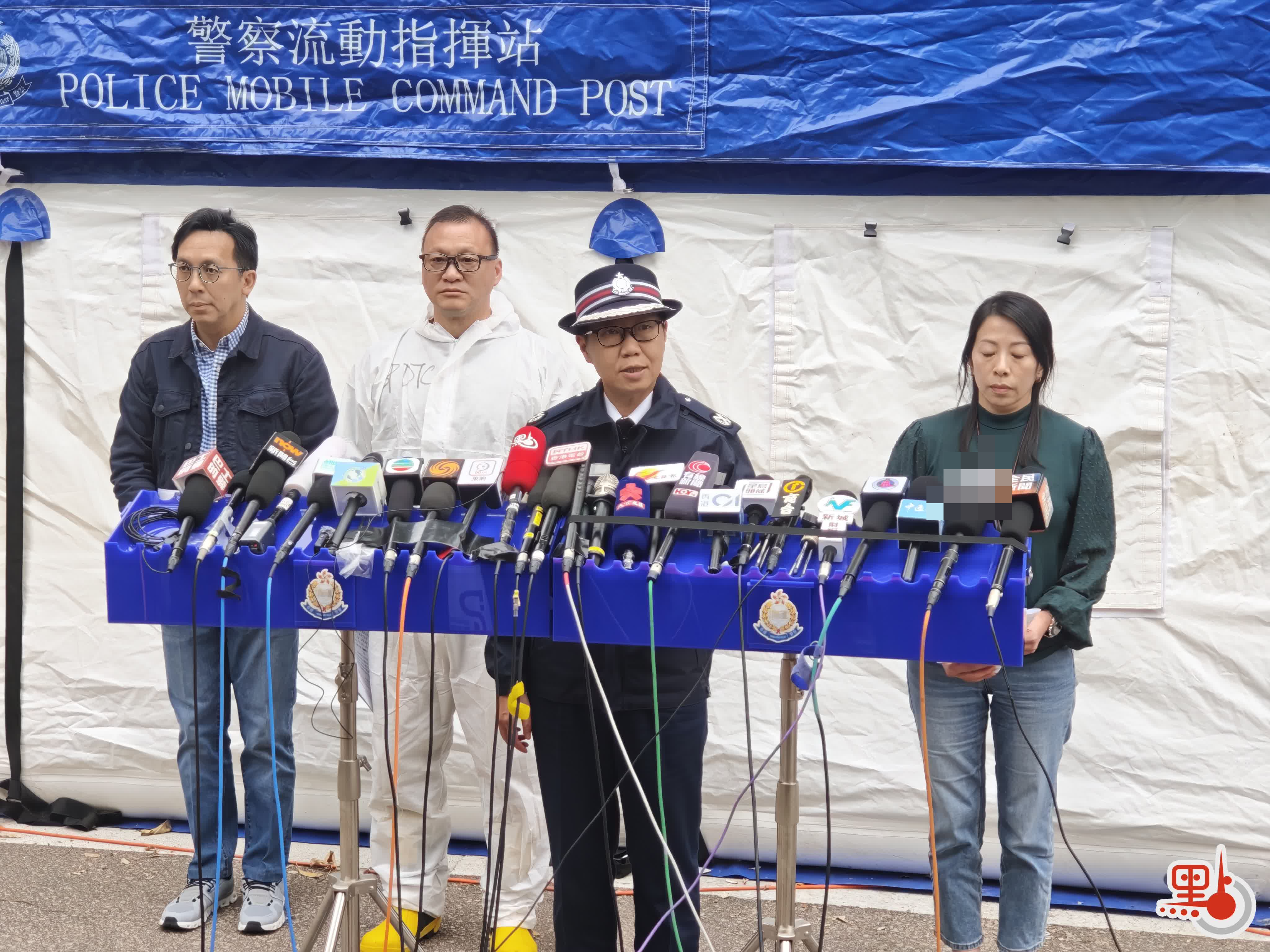【點新聞報道】今日(30日)下午5時,警務處新界北總區指揮官林敏嫻、警務處傷亡查詢中心主管曾淑賢、警務處災難遇害者辨認組主管鄭嘉俊,聯同房屋署副署長(發展及建築)梁洪偉於大埔廣福公園就早前大埔宏福苑五級火警事件見記者。
