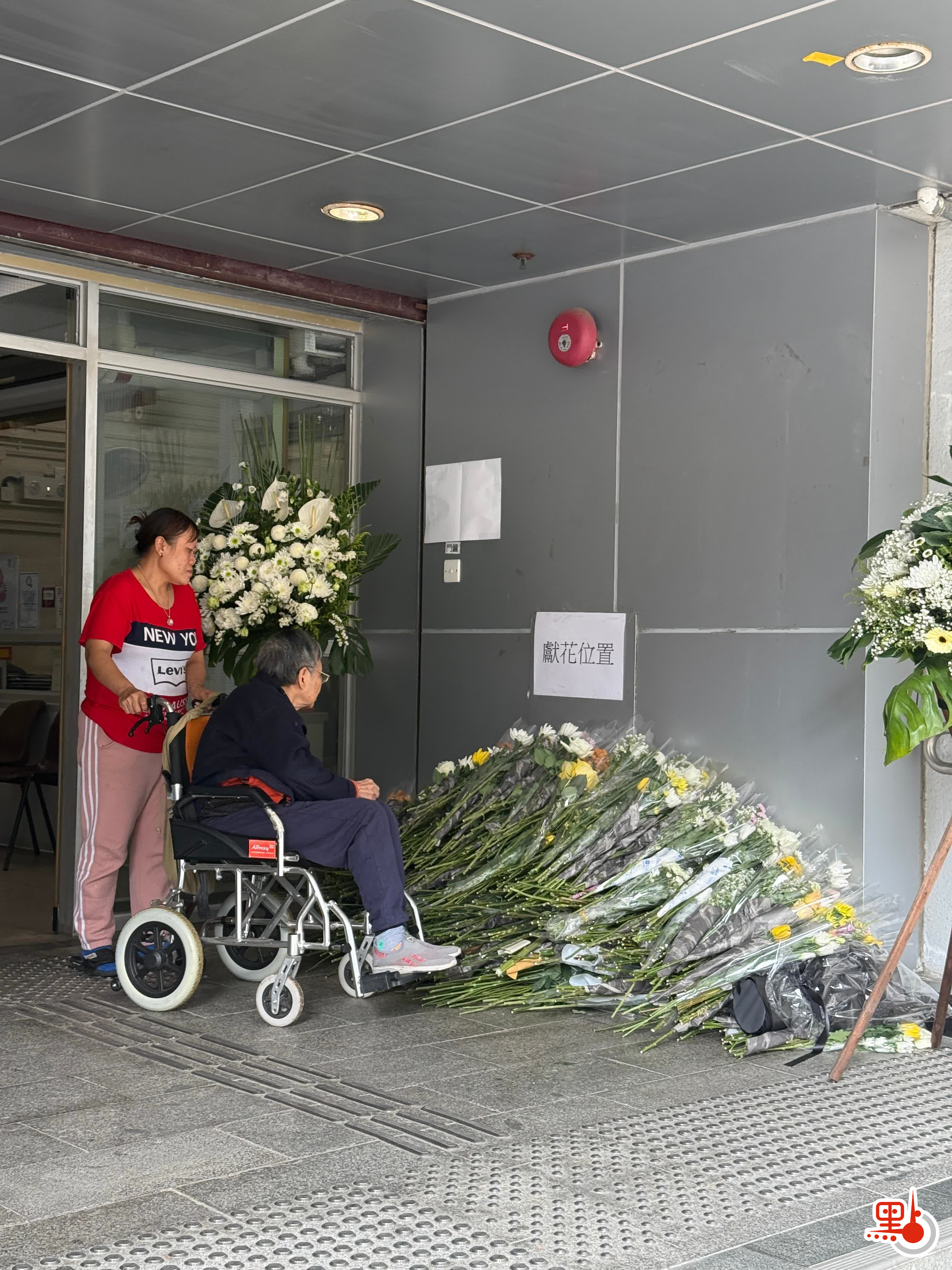 89歲的江太在家人的陪伴下前往弔唁處,在接受採訪的時候,她表示非常難過。家人也說感覺很不舒服,所以帶江太下樓前往弔唁處,表達自己的一份心意。