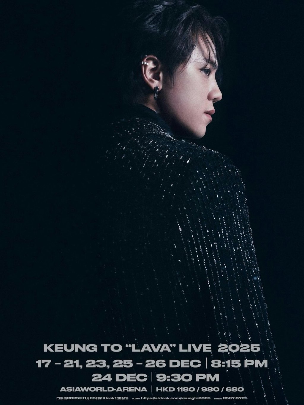 【點新聞報道】MIRROR人氣王姜濤將於本月在亞博舉行7場個人演唱會《KEUNG TO 「LAVA」 LIVE 2025》,主題「LAVA」意指熔岩,姜濤在演唱會宣傳海報置身於火海之中話題度十足。不過官方最新釋出海報,一改此前火光熊熊的畫面,改以純黑設計,料與日前大埔宏福苑五級火慘劇有關。