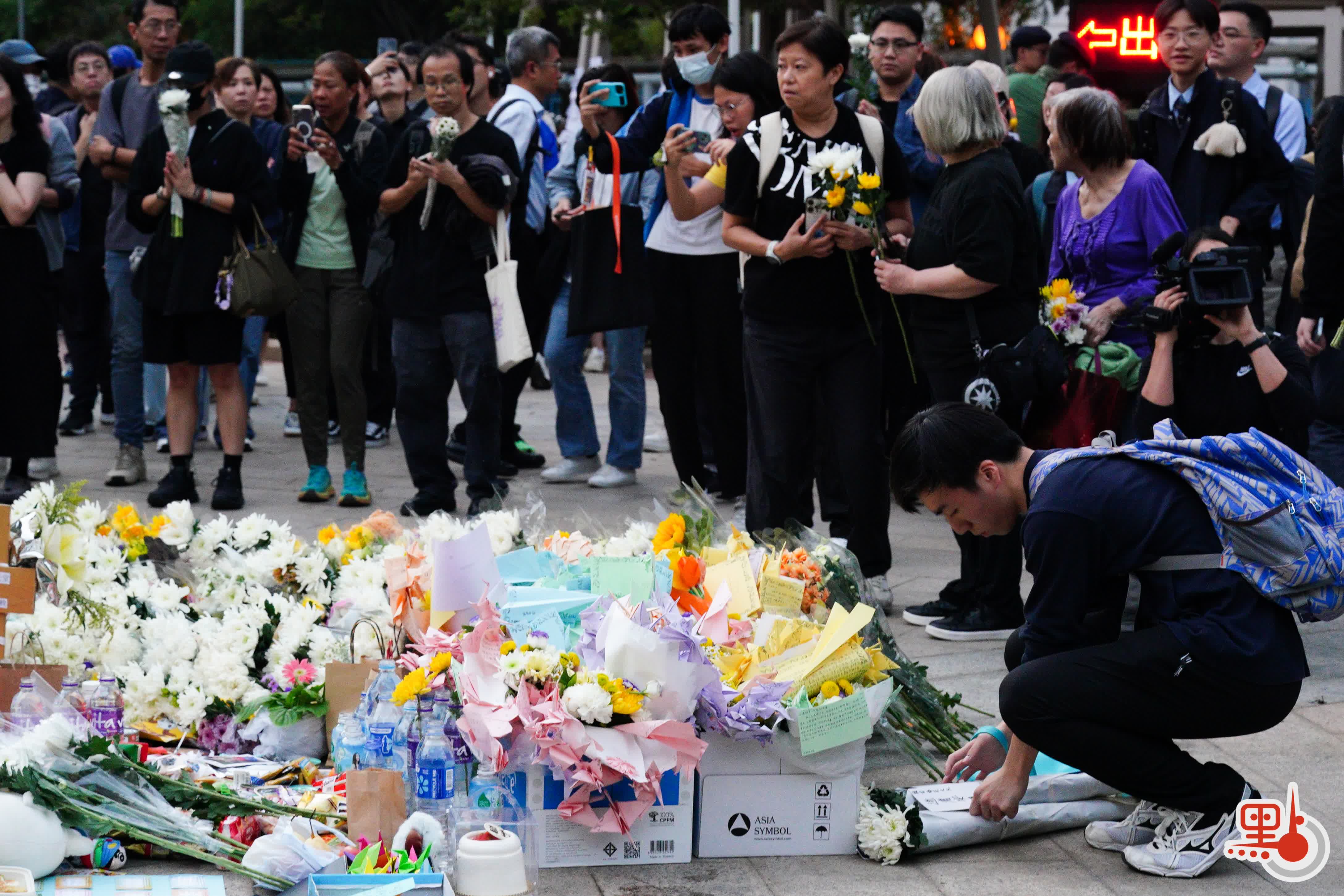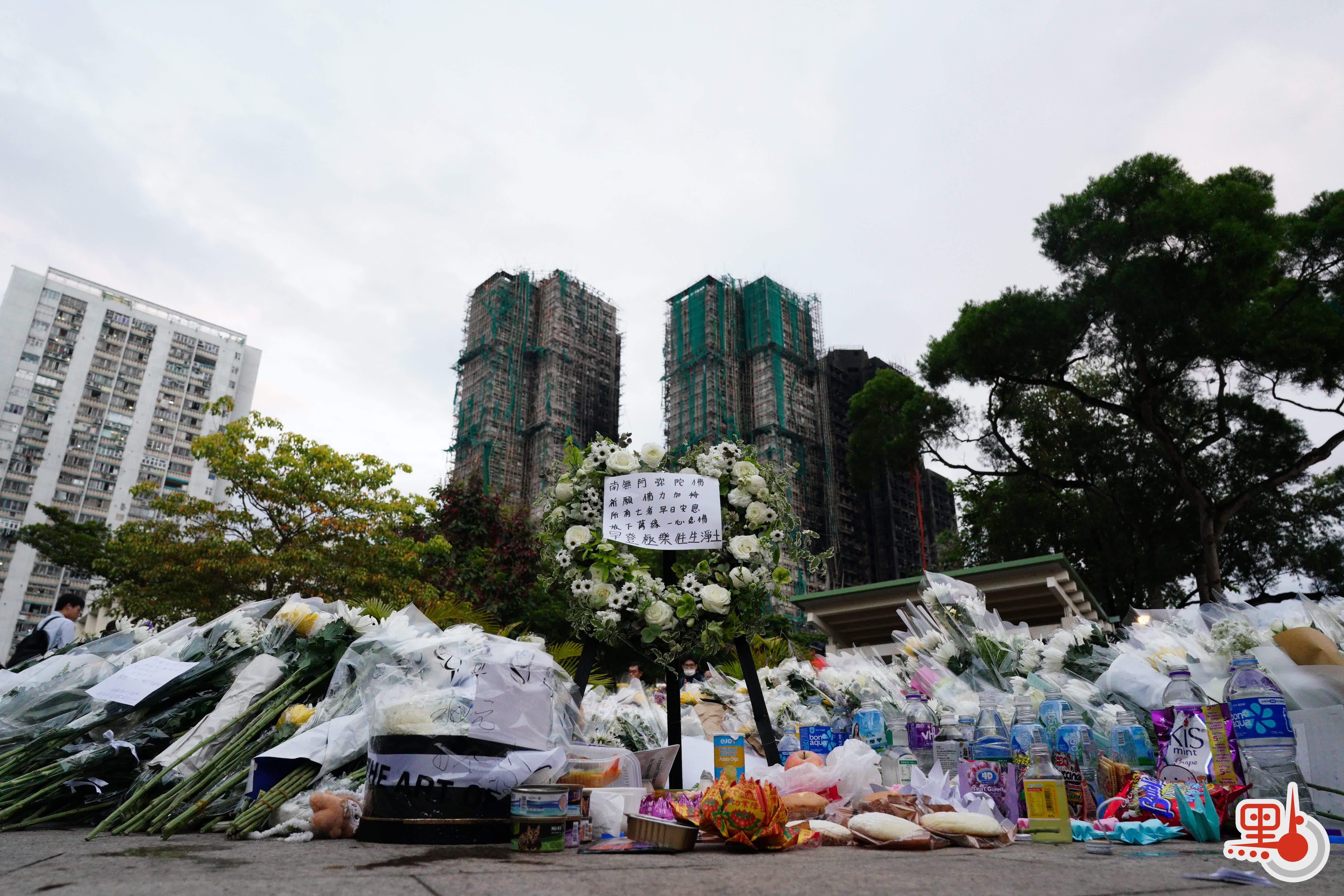 (多圖)宏福苑五級火|家屬路祭眾市民獻花弔唁 白菊花海中現毛絨玩具