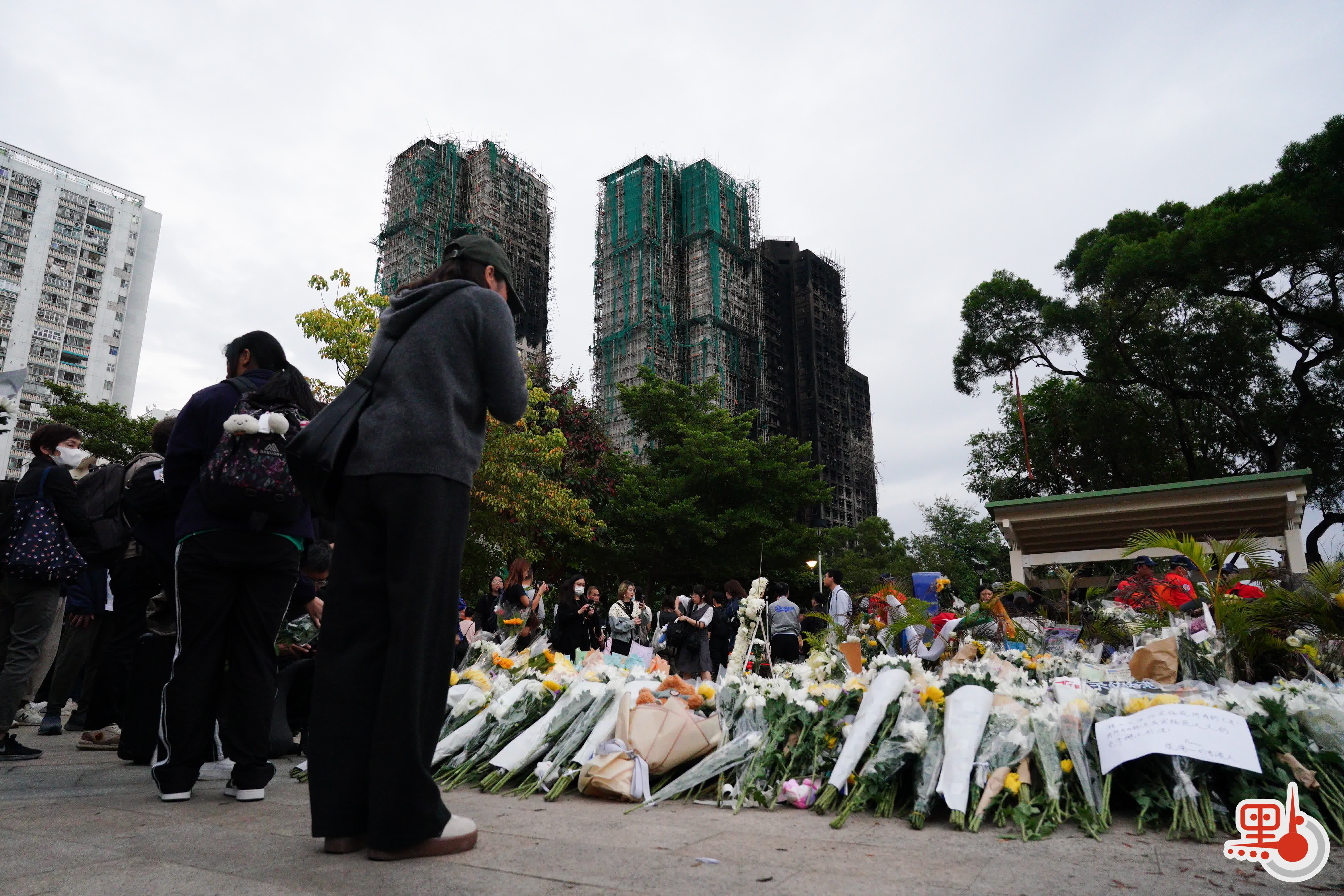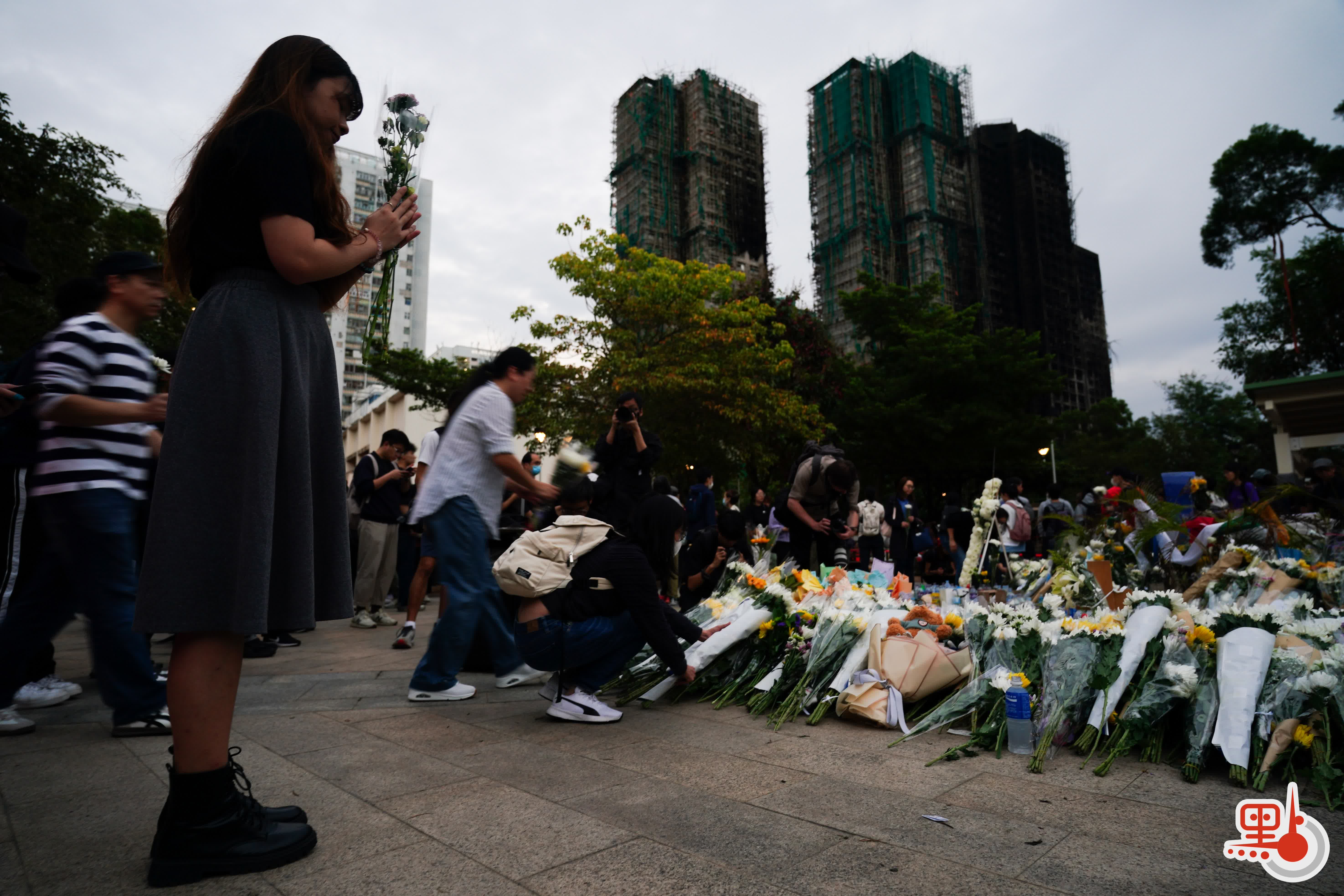 連日來,不少市民亦自發到場,以獻花、默哀、點燃蠟燭、摺疊祭祀用品等方式,悼念火災中的逝者。
