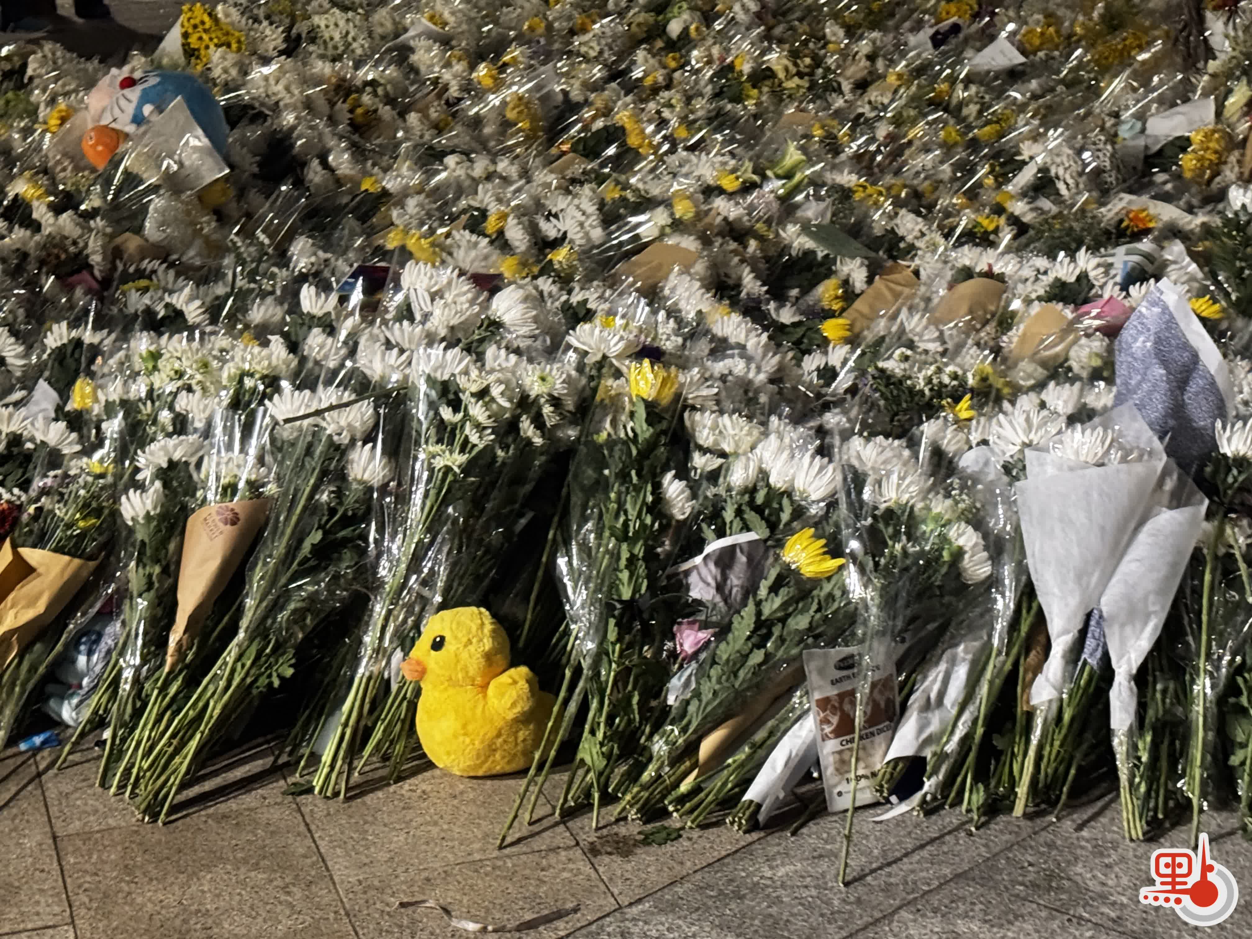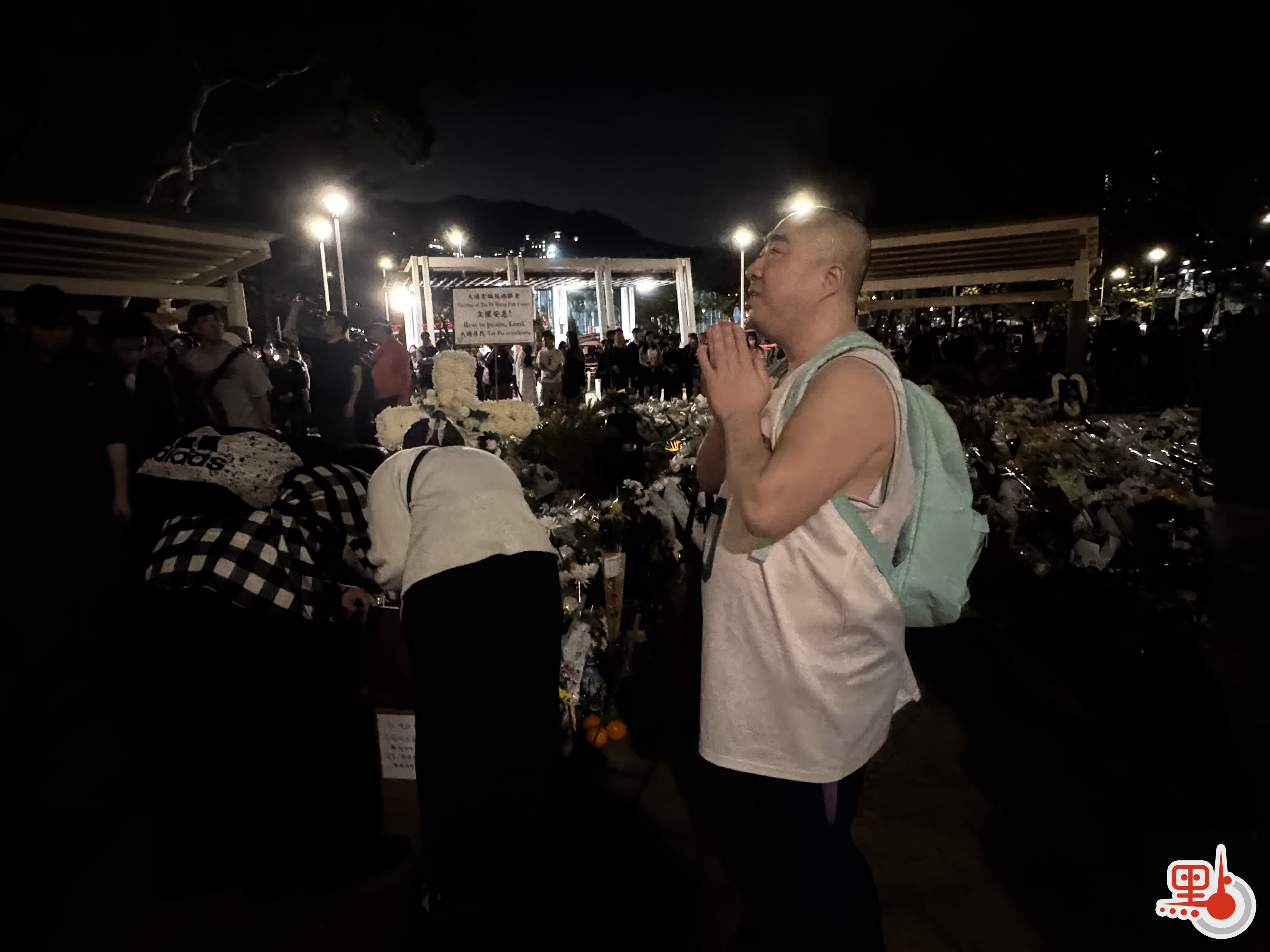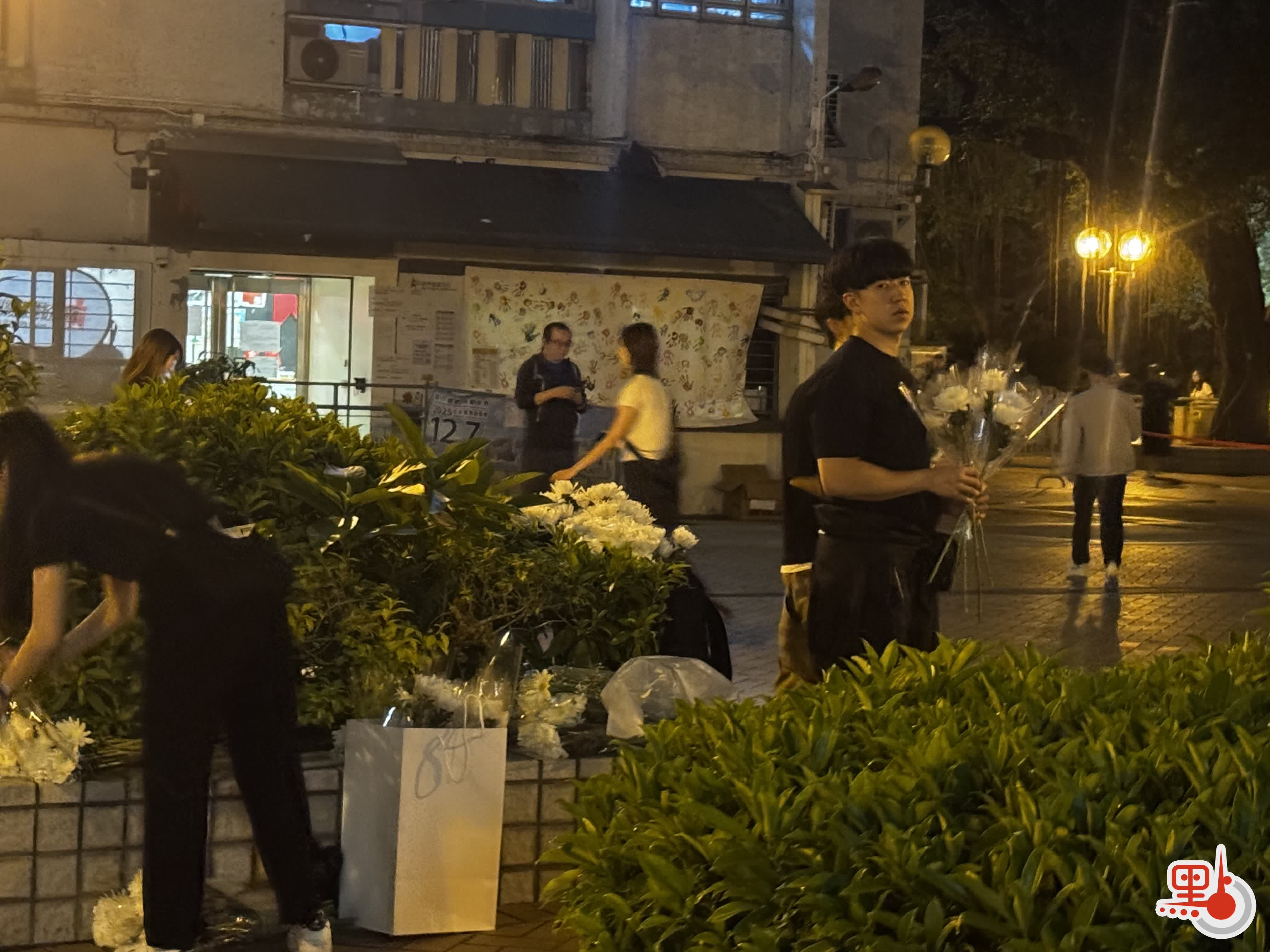 夜漸深,人未散。花靜靜開放,心意卡上墨跡未乾。市民們用自己的方式,陪逝者走過這第七天的夜。