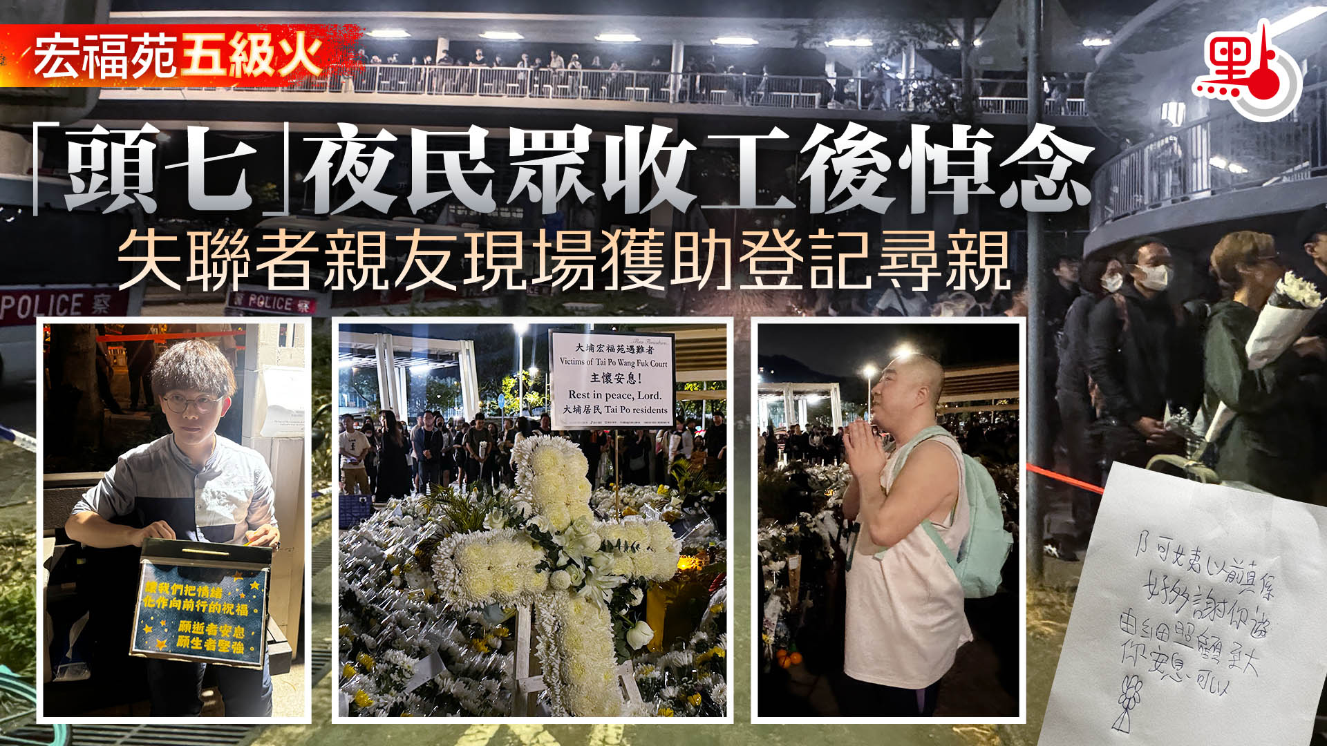 (多圖)宏福苑五級火|「頭七」夜民眾收工後悼念 失聯者親友現場獲助登記尋親