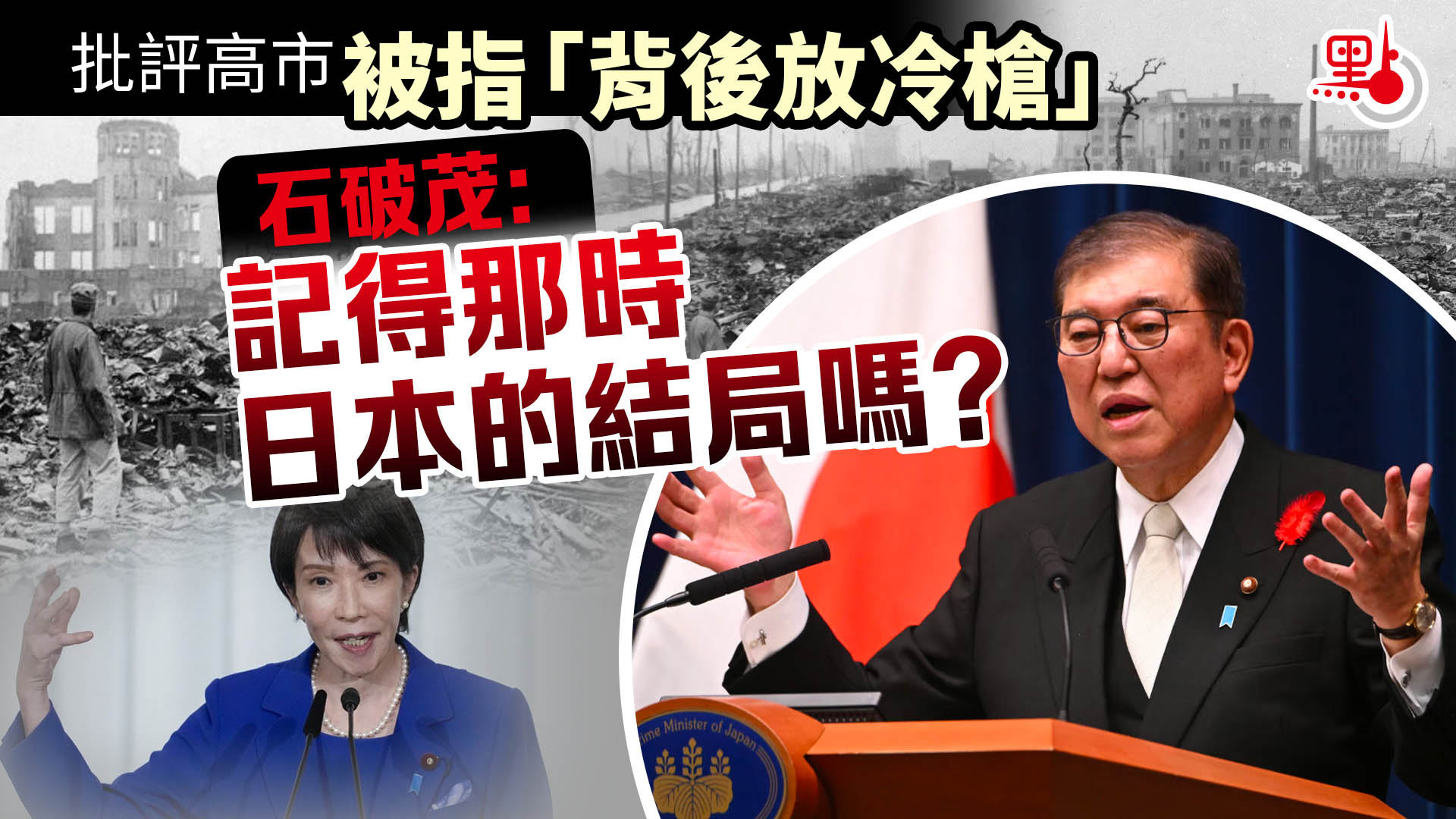 批評高市被指「背後放冷槍」 石破茂:記得那時日本的結局嗎?