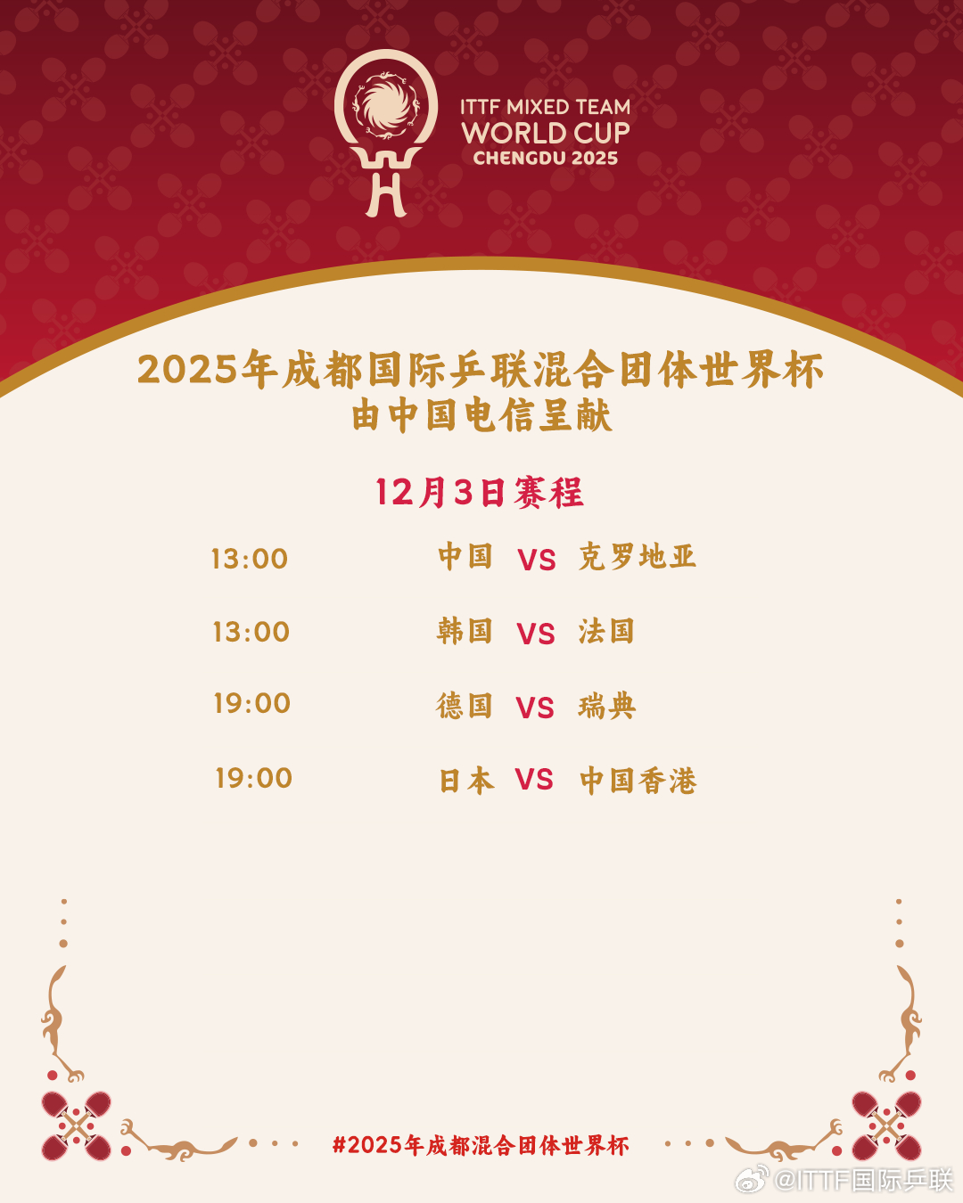 【點新聞報道】12月3日,2025國際乒聯混合團體世界盃在成都繼續進行。第二階段第一輪,中國隊以大比分8比0戰勝克羅地亞隊,收穫開賽以來的四連勝!