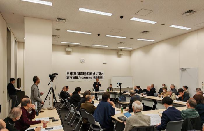 日本前外務省官員、東亞共同體研究所所長孫崎享在集會上發表演講,他表示,台灣問題純屬中國內政,高市將其與日本「存亡危機事態」掛鈎的說法是無稽之談。孫崎享說,「日本政府應嚴格恪守在台灣問題上作出的政治承諾。高市的言論違背了日本政府在1972年日中聯合聲明中所作承諾,這會讓國際社會認為日本是一個背信棄義的國家。」他強烈呼籲日本政府及社會各界重溫日中聯合聲明,以此為基礎發展日中關係。