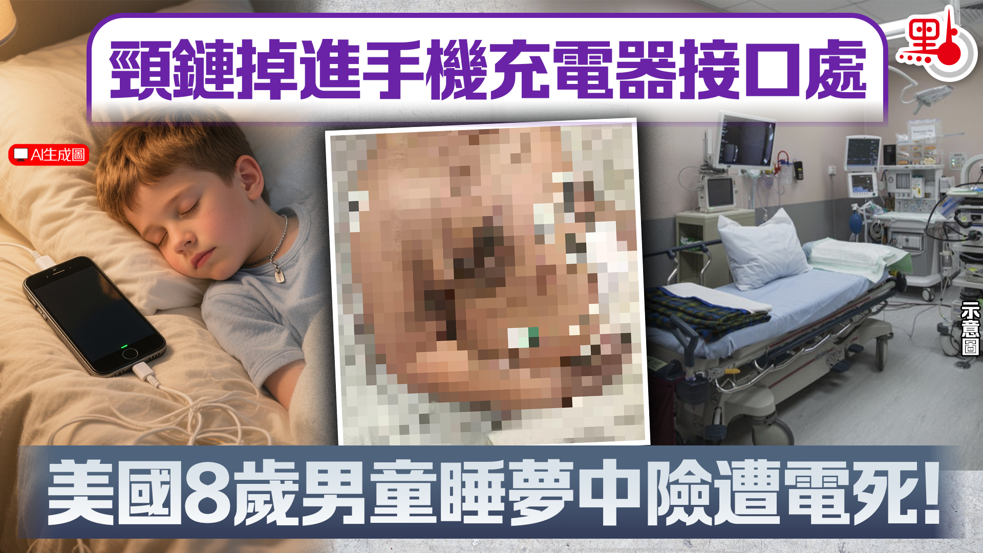 頸鏈掉進手機充電器接口處 美國8歲男童睡夢中險遭電死!