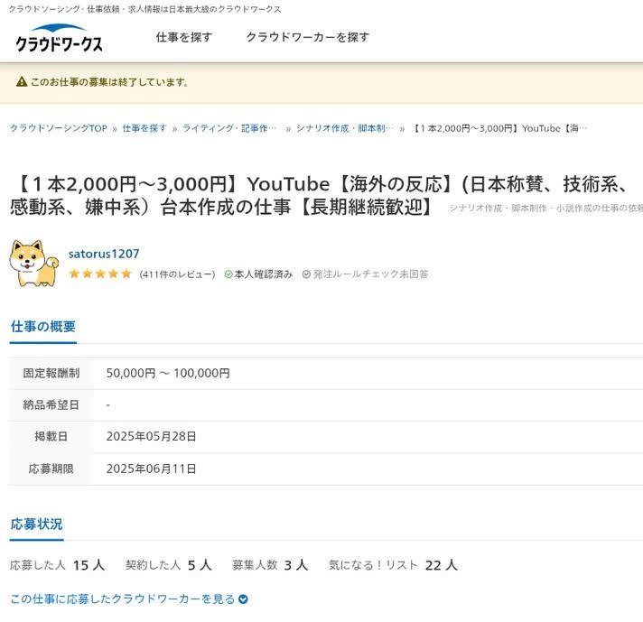 【點新聞報道】據環球網援引日本「J-CAST」新聞網12月3日報道,近日有日本網民發現,日本招聘網站「雲工作」(cloud works)上出現不當招聘信息,工作內容為「撰寫抹黑中國人形象的虛構視頻的劇本」等。「雲工作」回應稱,該招聘信息涉嫌違反網站規定,目前已下網。
