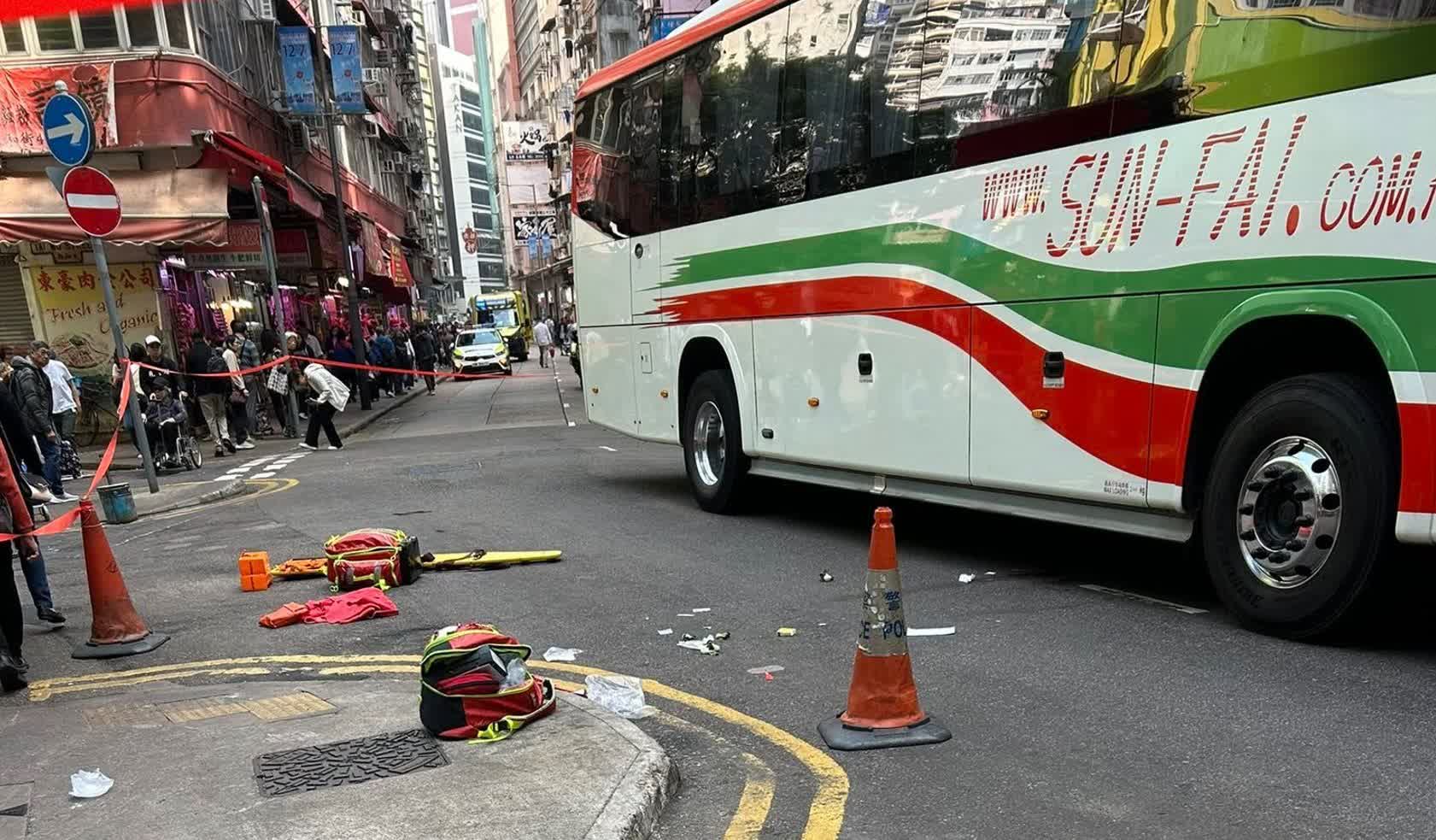(有片)灣仔86歲婦遭旅遊巴撞捲車底不治 司機涉危駕被捕