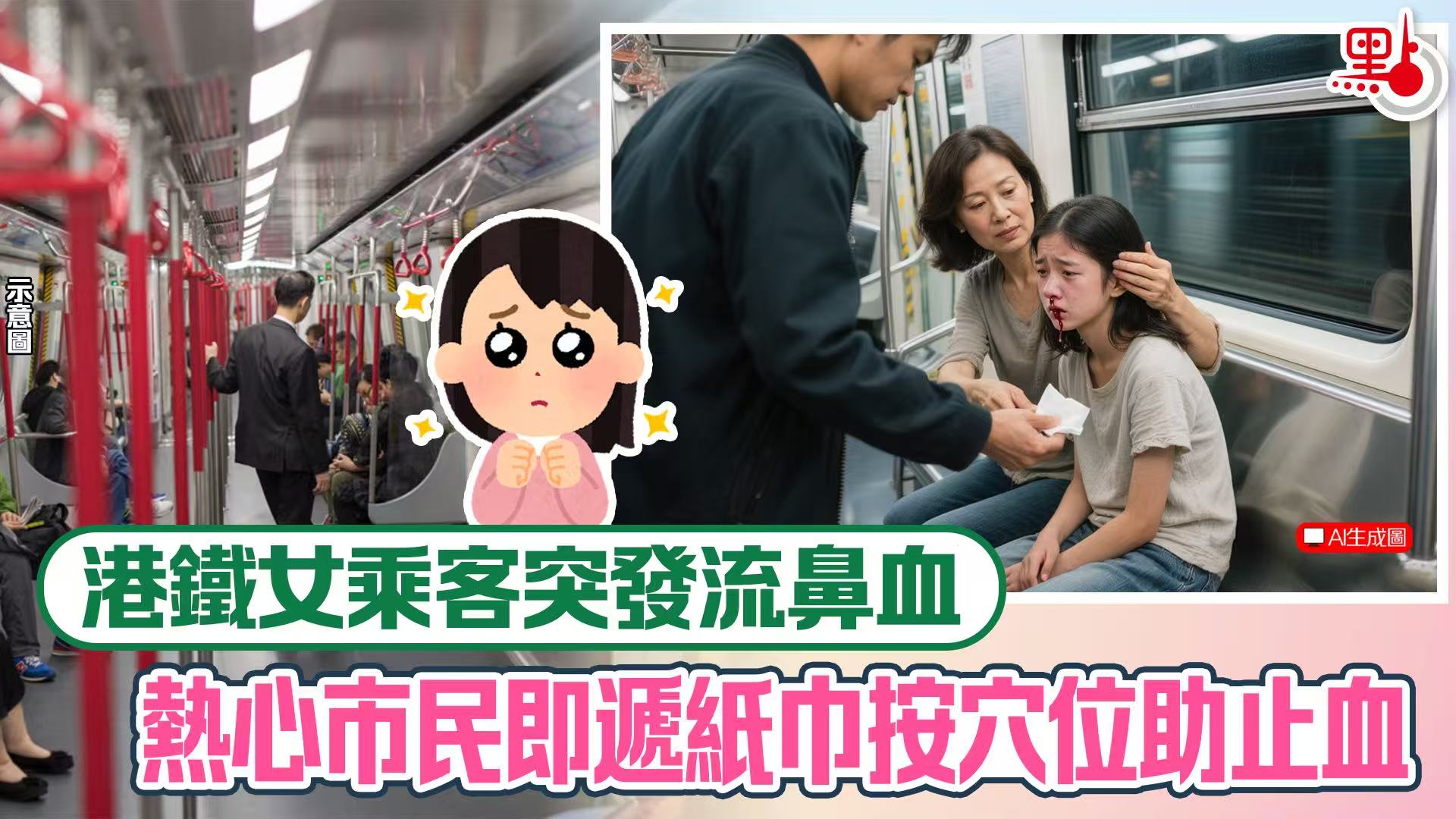 港鐵女乘客突發流鼻血 熱心市民即遞紙巾按穴位助止血