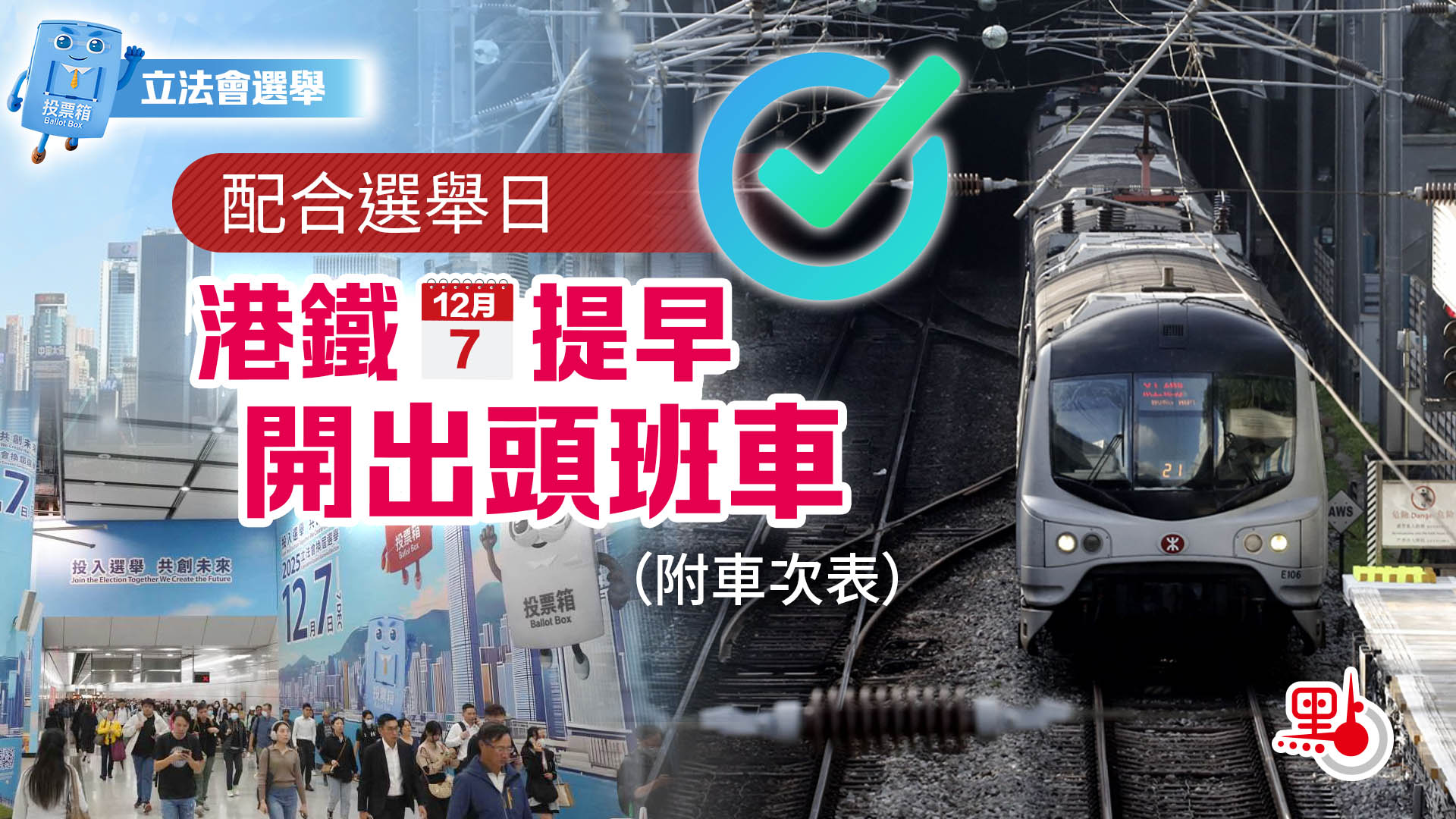 立法會選舉|配合選舉日 港鐵明提早開出頭班車(附車次表)