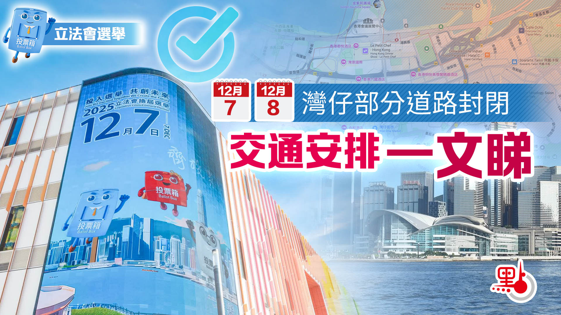 【點新聞報道】為配合2025年立法會換屆選舉,運輸署發布公告表示,將在灣仔實施特別交通及運輸安排,12月7日(星期日)至12月8日(星期一)灣仔部分道路將臨時封閉,公共運輸亦有特別安排。