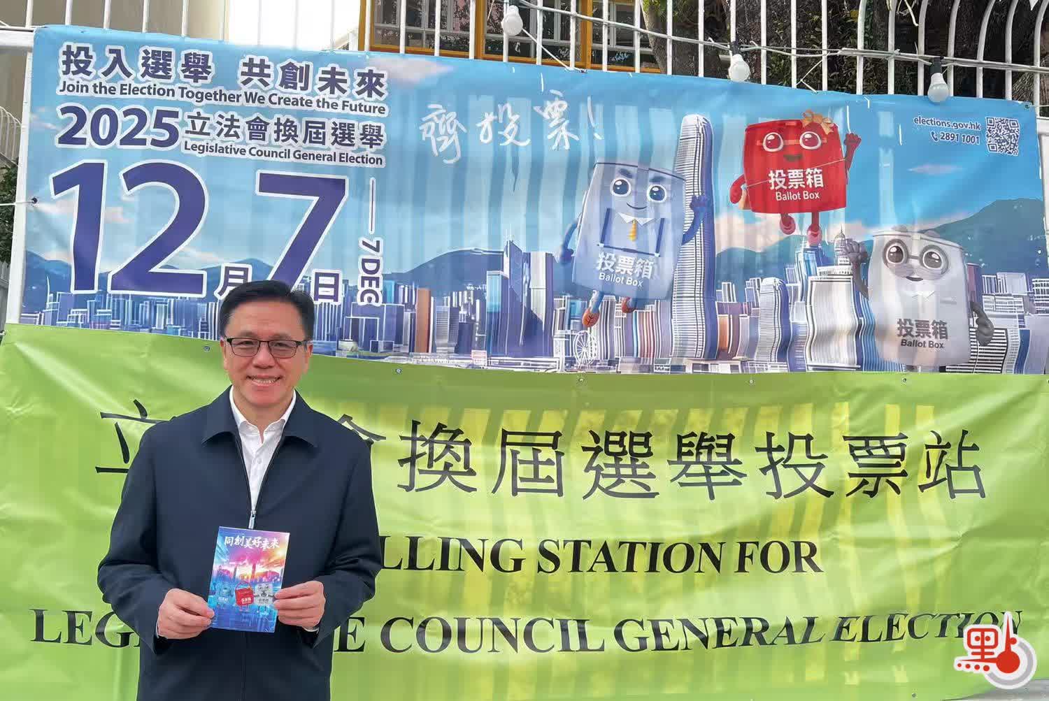 保安局局長鄧炳強表示,今早與家人及鄰居一同前往票站投票,過程順利。他指,完成選舉不僅是維護社會穩定的重要舉措,更是推動改革與建設未來的關鍵一步。為了加快落實各項重要政策,尤其是支援災民、重建家園,以及制度檢討、法例改革、撥款審議等工作,希望大家今日踴躍投票,選出以民為本、服務香港的新一屆立法會議員,與政府一同推動改革,共建更美好的香港。