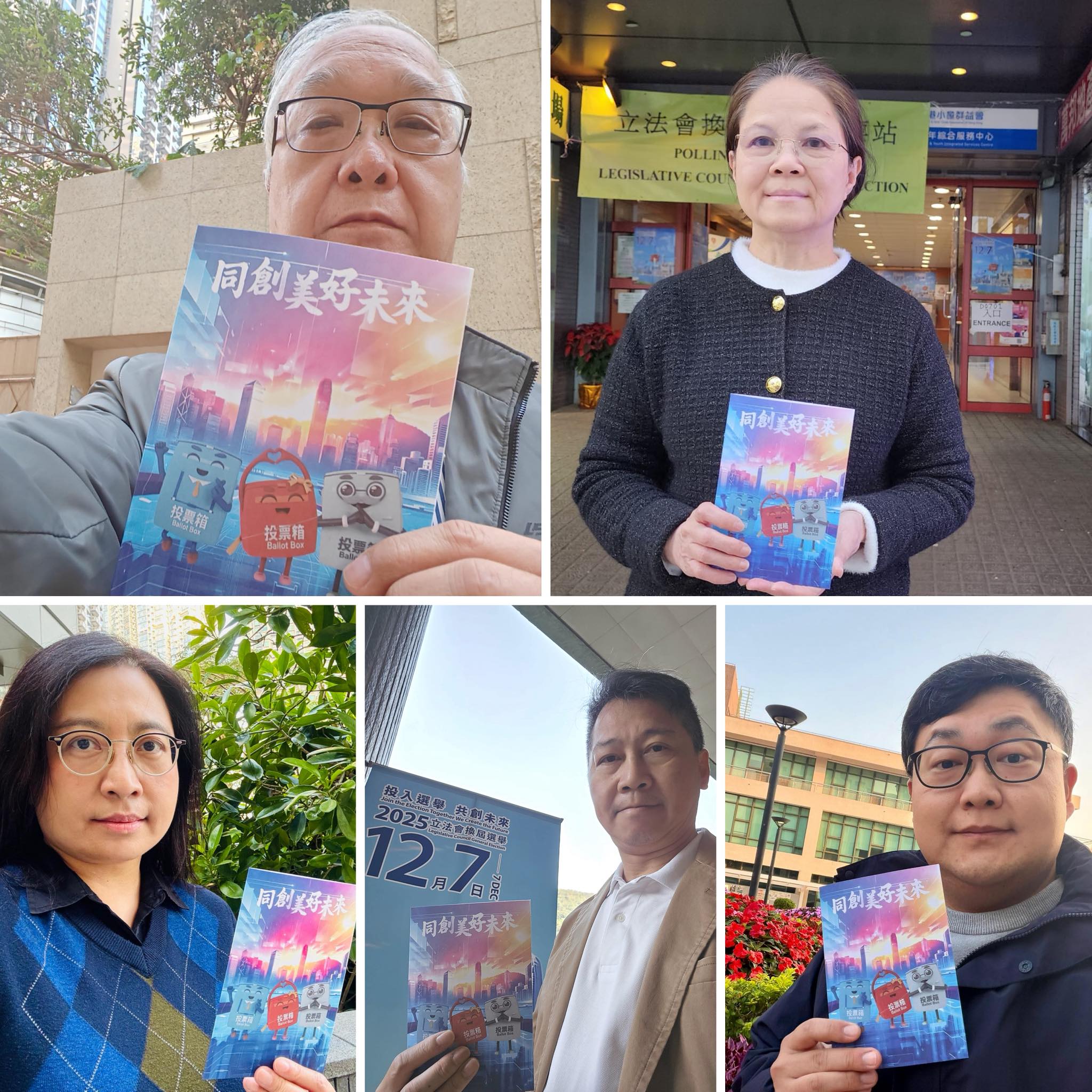環境及生態局局長謝展寰與常任秘書長(食物)楊碧筠、常任秘書長(環境)張國財、副局長黃淑嫻及局長政治助理李世隆今早完成投票,並呼籲各位選民把握時間,盡早投票,選出有抱負、有承擔、有能力、有魄力的立法會議員,與政府共同推動改革,讓香港變得更安全,讓市民生活得更安心。