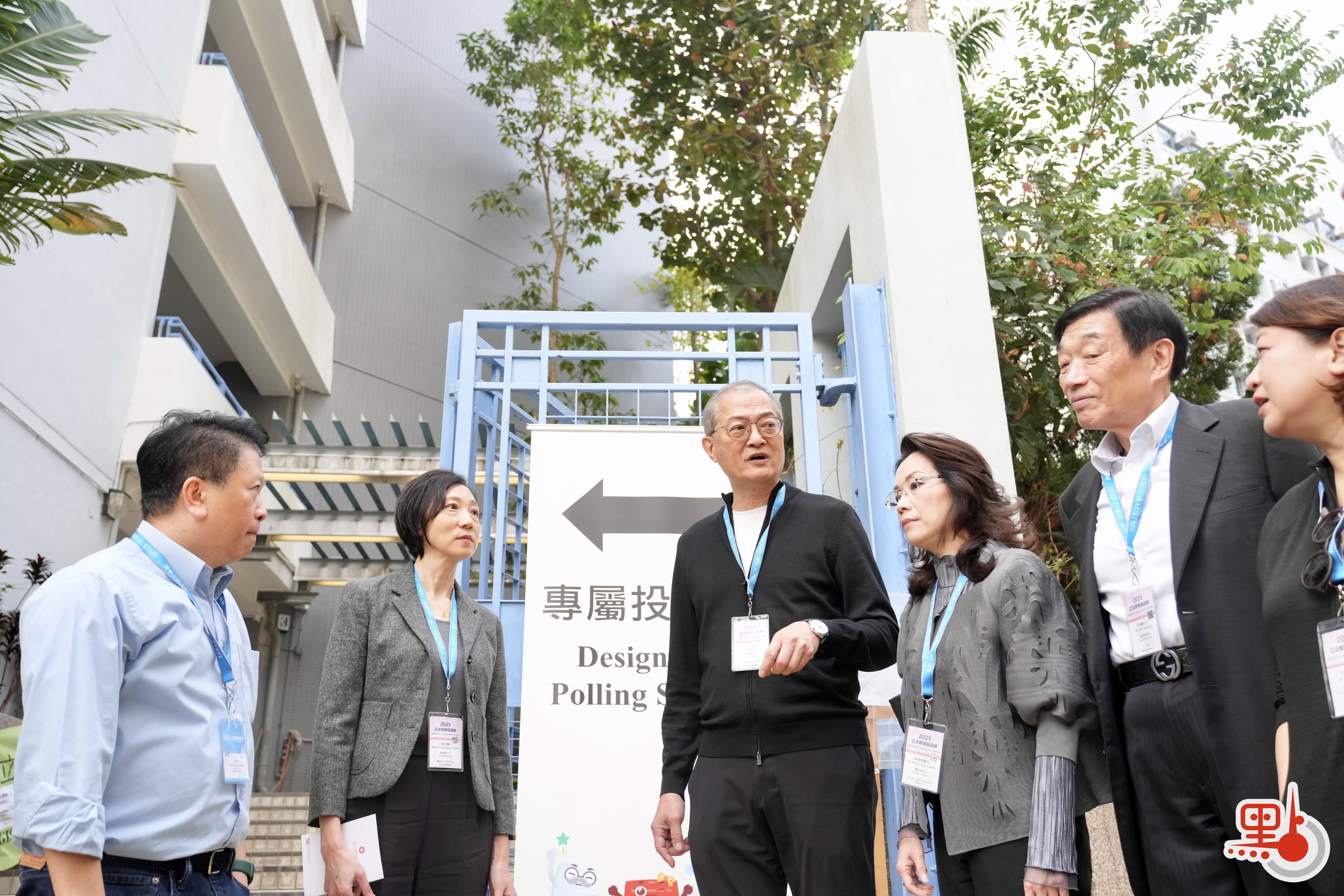 教育局局長蔡若蓮今早到票站投票,履行公民責任。此外,她亦走訪保良局陳守仁小學及香港管理專業協會李國寶中學,視察投票站的運作,了解現場秩序和設施安排,感受濃厚的選舉氣氛。蔡若蓮又到九龍塘教育服務中心及教育局辦公室,為在投票日推動選舉的同事打氣。