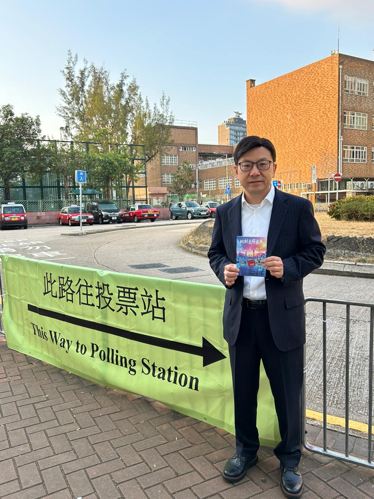 商務及經濟發展局局長丘應樺今早前往所屬票站投下重要的一票。丘應樺呼籲各位市民包括公務員同事踴躍投票,選出有能力、有抱負的立法會議員,共建更美好香港家園。深化改革、同創未來。