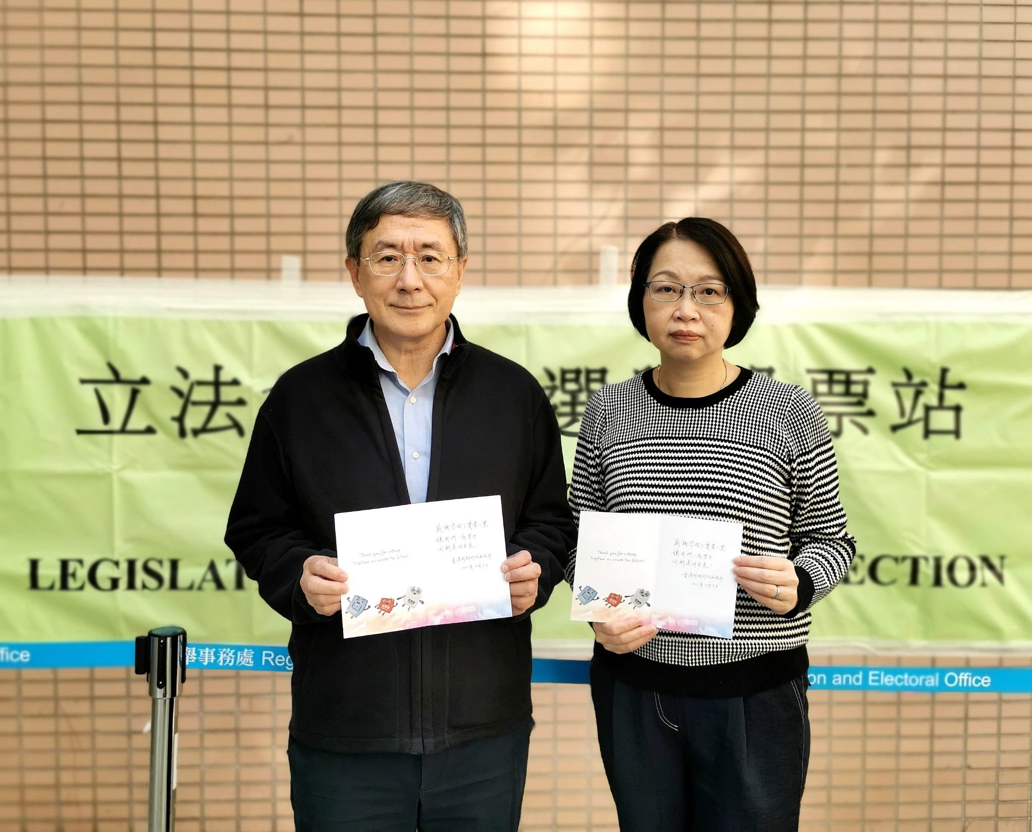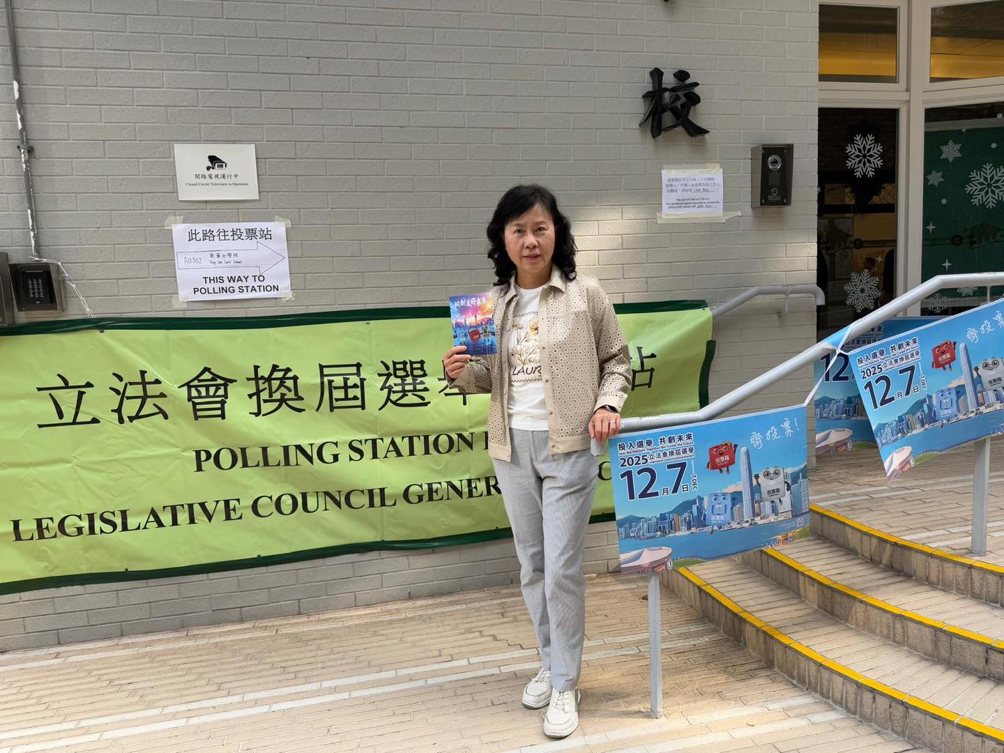 私隱公署於社交平台發文指,個人資料私隱專員鍾麗玲今早已經投票,呼籲大家履行公民責任,為香港投下關鍵一票,選出愛國愛港、有能力、有擔當、有熱誠、勤奮服務市民的賢能人士擔任立法會議員,為香港、為家園美好的將來作出貢獻。