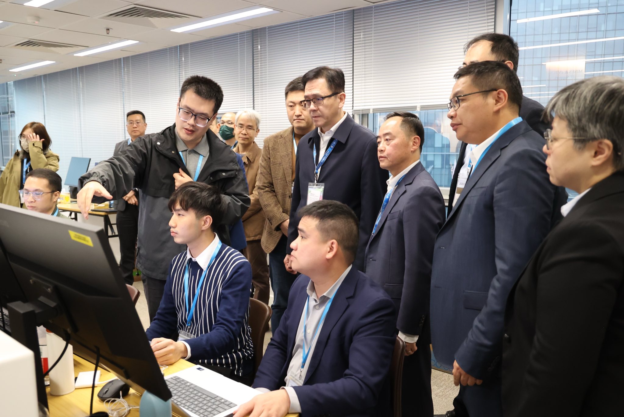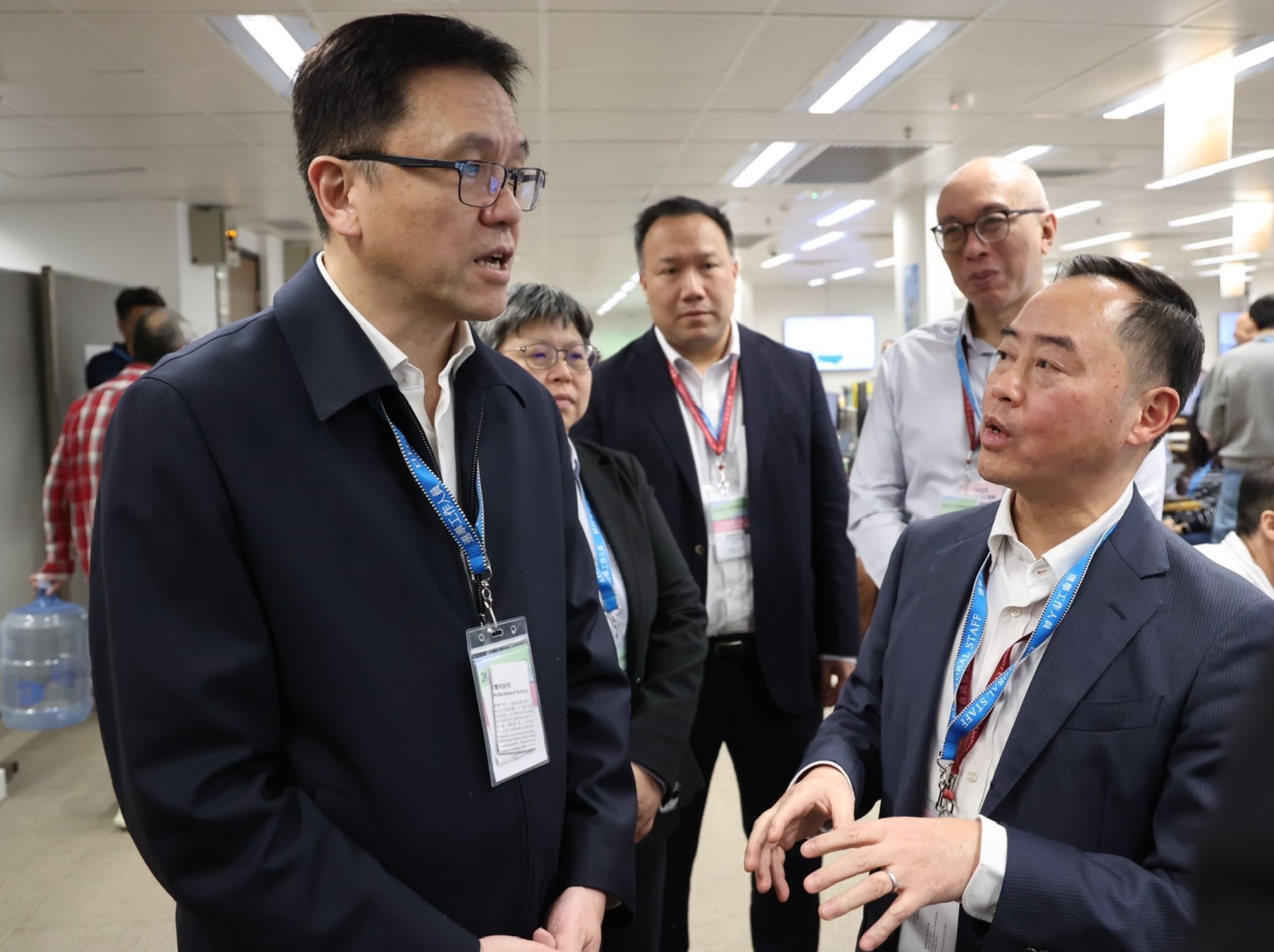 【點新聞報道】創新科技及工業局局長孫東今日(7日)傍晚視察選舉事務處「中央指揮中心」,聽取數字政策專員黃志光匯報本次立法會換屆選舉的實時系統監察情況。期間,孫東亦與來自數字政策辦公室、選舉事務處、選舉系統和網絡服務承辦商Nexify、華為及香港電訊的技術團隊親切交流,了解各團隊在選舉期間的工作情況。