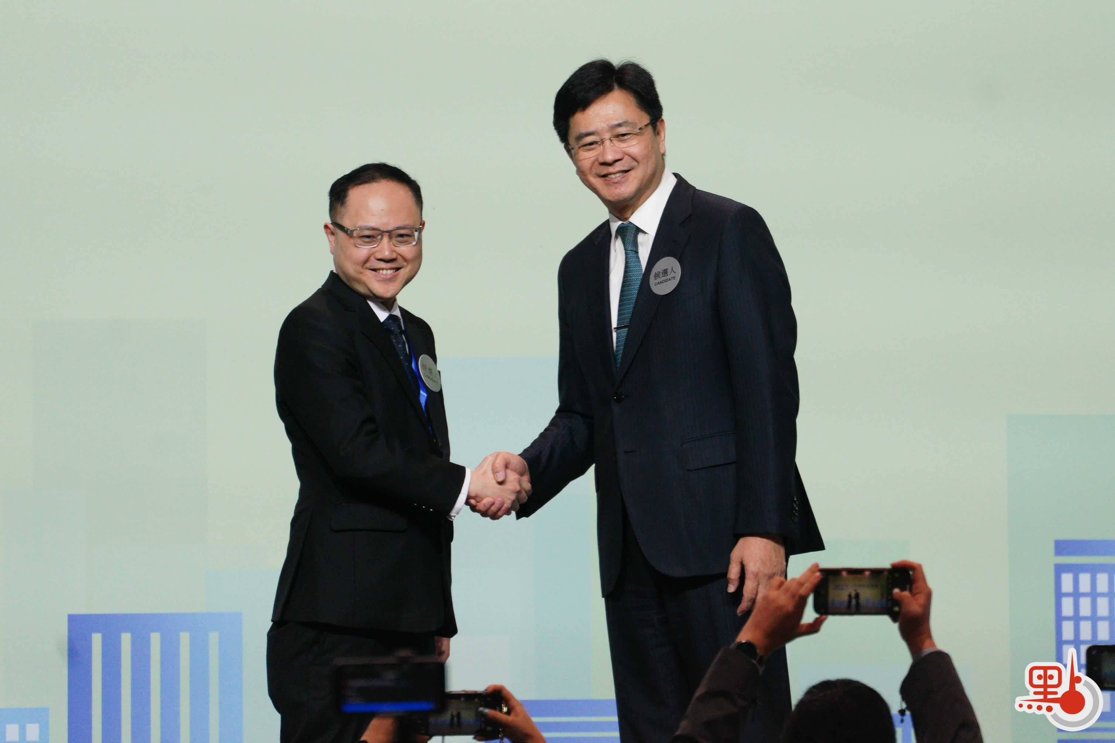 【05:48】批發及零售界公布結果:邵家輝(827票)擊敗謝邱安儀(149票)成功當選。
