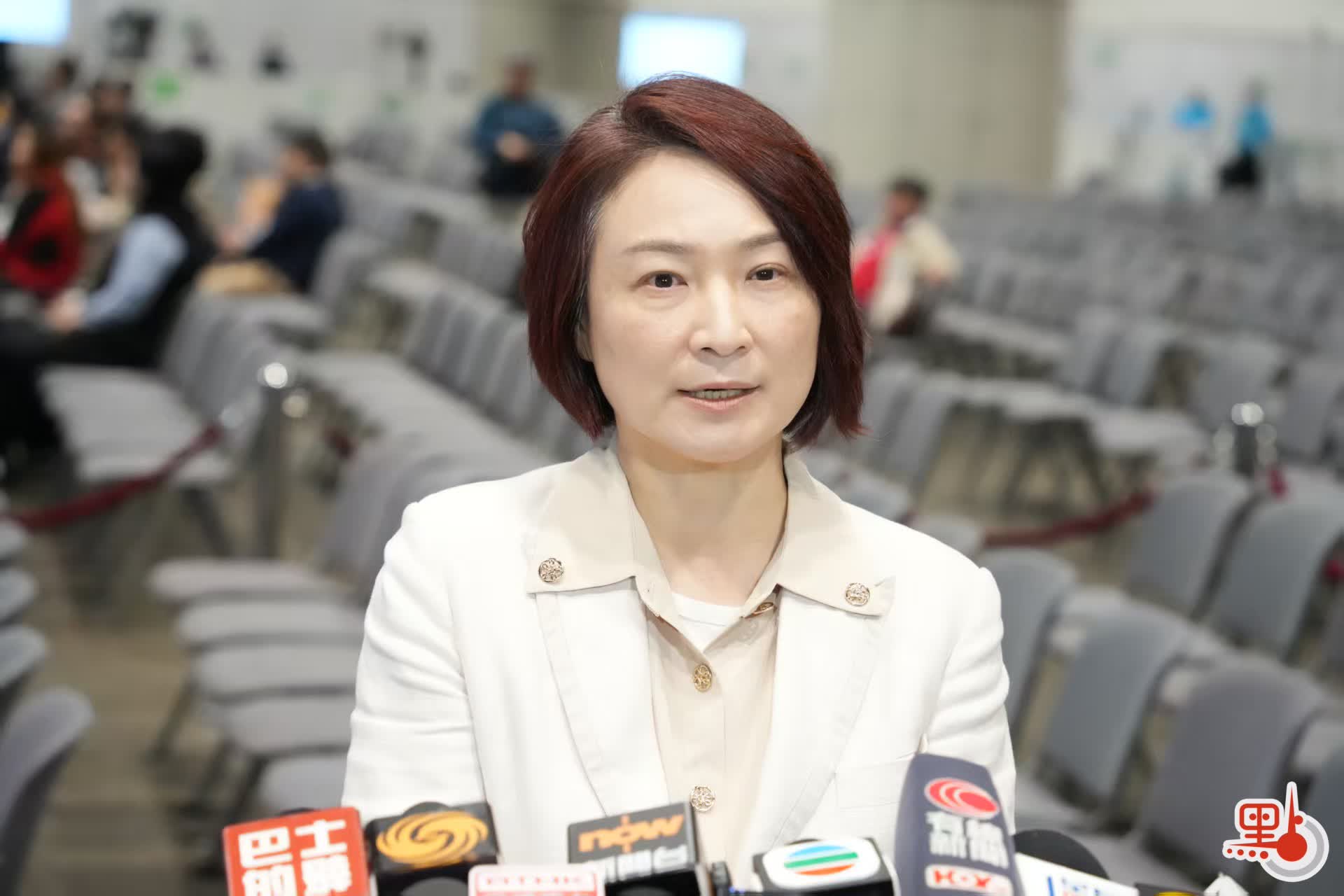 植潔玲形容選情激烈,有很多難以預料的因素,但感謝選民的支持。而作為新人,她相信自己過去有協助立法會議員的豐富經驗,有助推動之後的議會議案及法例。
