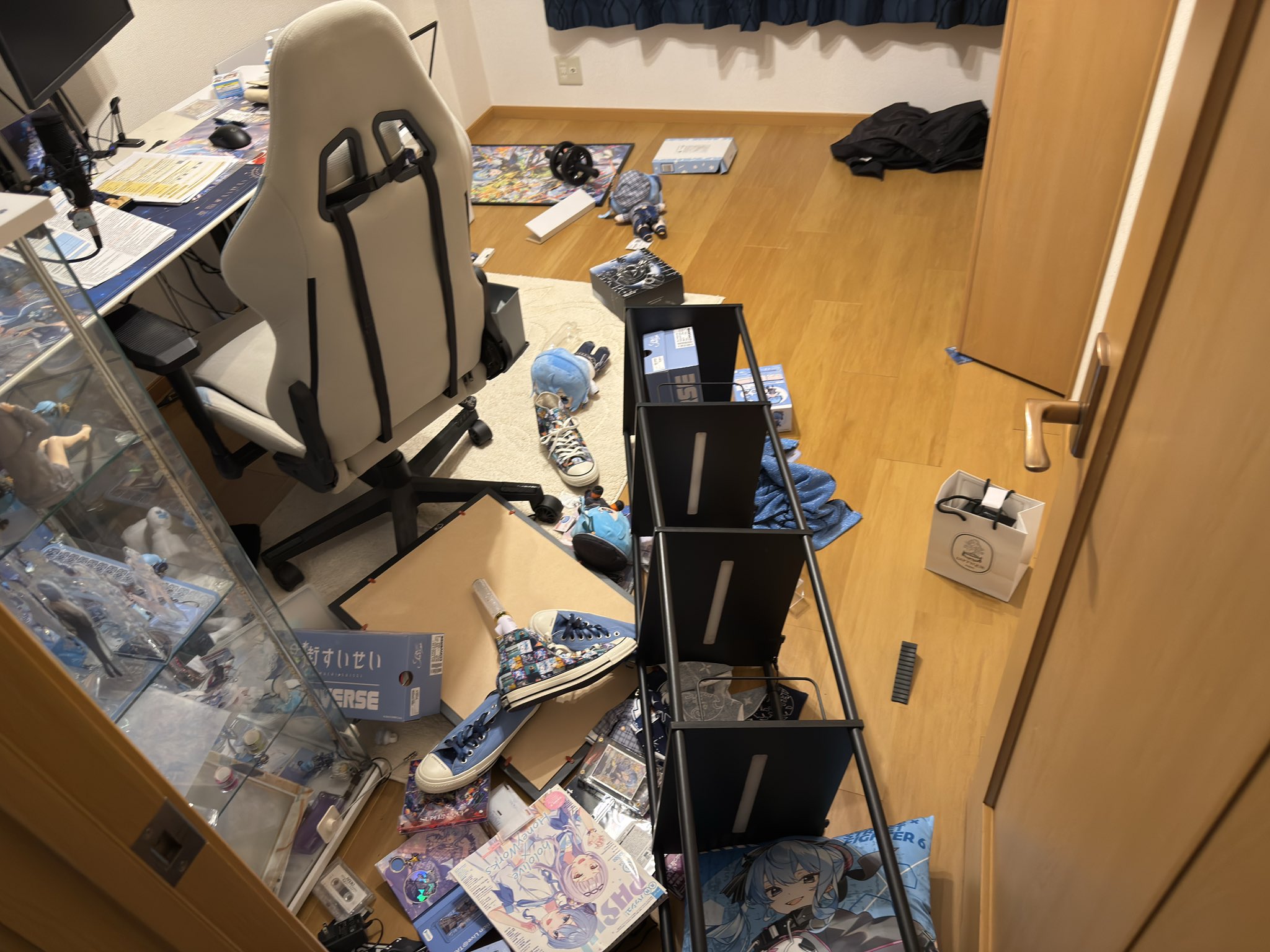 一位日本網民分享地震時的一段視頻,影片記錄了地震發生時其家中情景。畫面可見,吊燈劇烈搖晃,並且手機傳出地震警報聲。另外,有日本網民上傳海嘯警報播出時的視頻。還有部分網民上傳家中情景,只見物品散落、滿地狼藉。