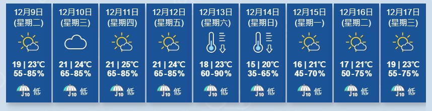 【點新聞報道】東北季候風正影響華南,該區天色大致良好。天文台預測,本港今日(9日)大致天晴。早上市區最低氣溫約19度,新界再低兩三度,日間最高氣溫約23度。稍後漸轉多雲,晚上有一兩陣微雨;吹和緩至清勁東至東北風,初時離岸間中吹強風。