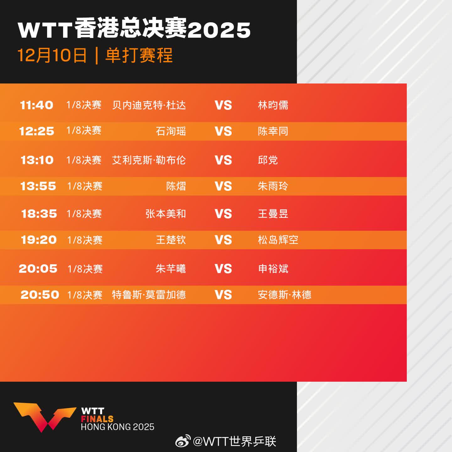 單打方面,王楚欽將於今晚7時20分迎戰松島輝空,王曼昱將於今晚6時35分對陣張本美和。