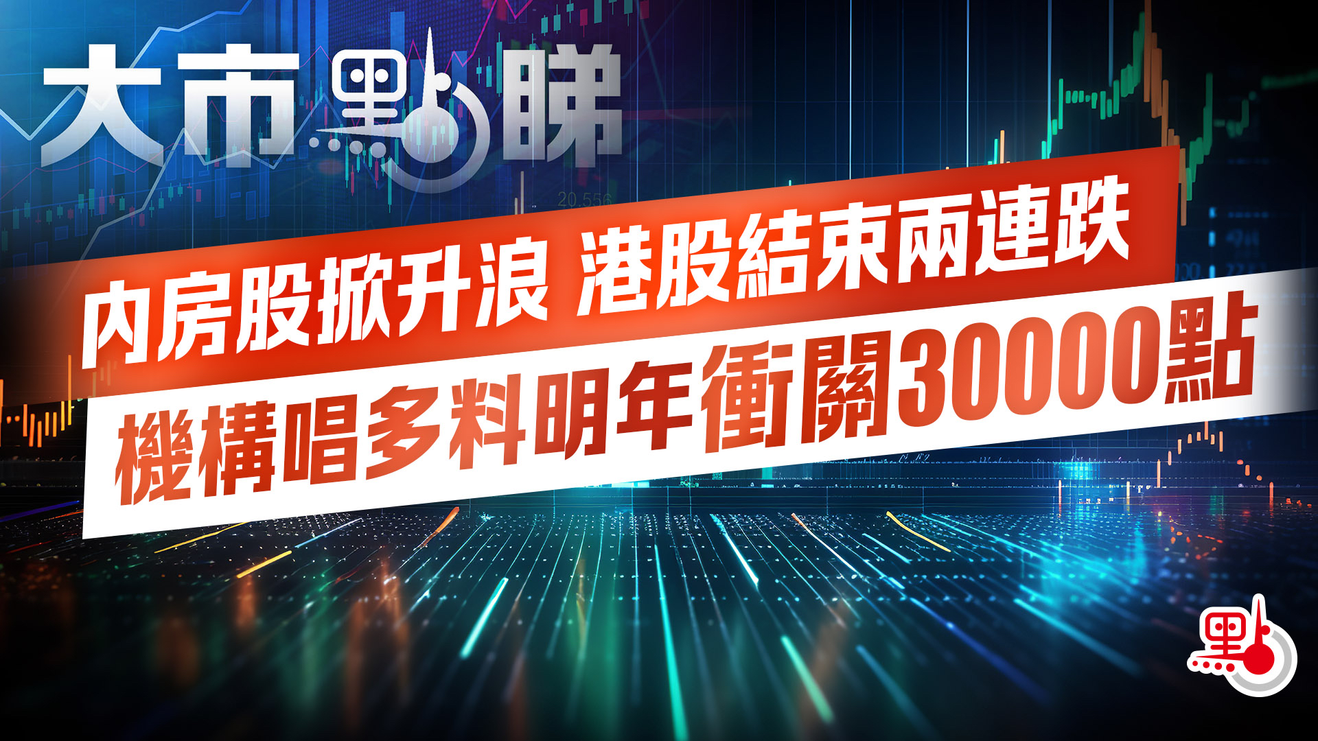 大市點睇|內房股掀升浪 港股結束兩連跌 機構唱多料明年衝關30000點