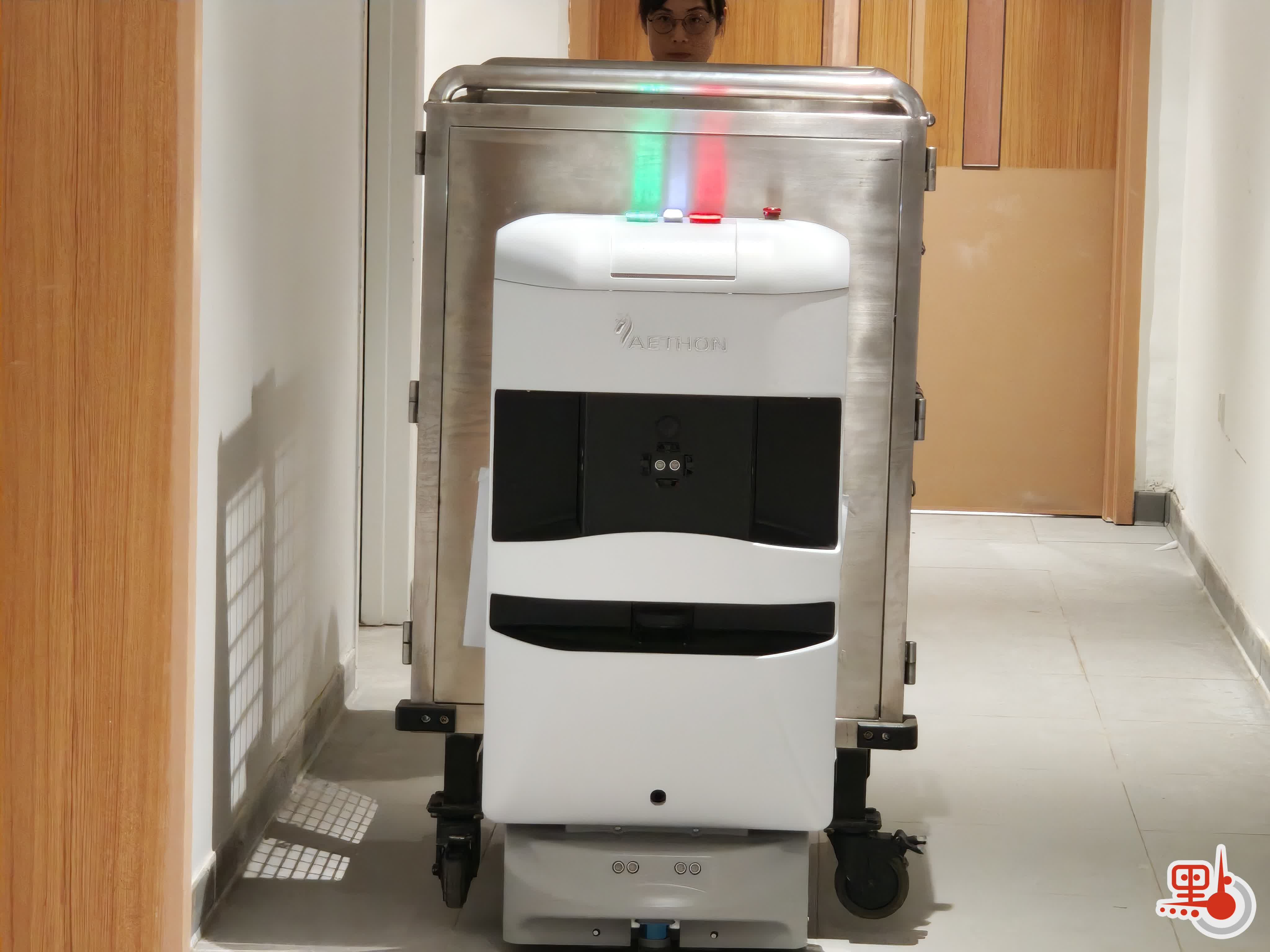 在醫院的過道中,記者還看到了一台自動搬運機械人。據醫院副行政總監(中醫)張振海介紹,由於醫院面積較大,載貨載物有時需要靠機器人幫手,醫院特別為它們留出了通道,它們在其中可以全自動行駛、運載物品。