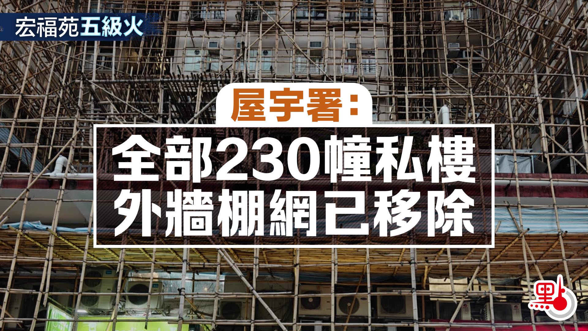宏福苑五級火|房屋署周五起移除宏昌、宏泰及宏新閣被燒毀外牆棚架