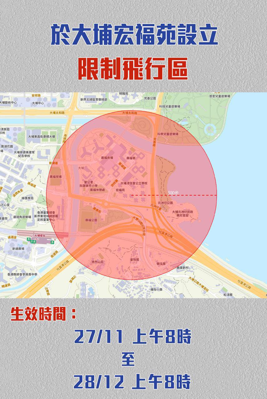 宏福苑五級火|無人機限飛延至12·28 限飛範圍一圖睇