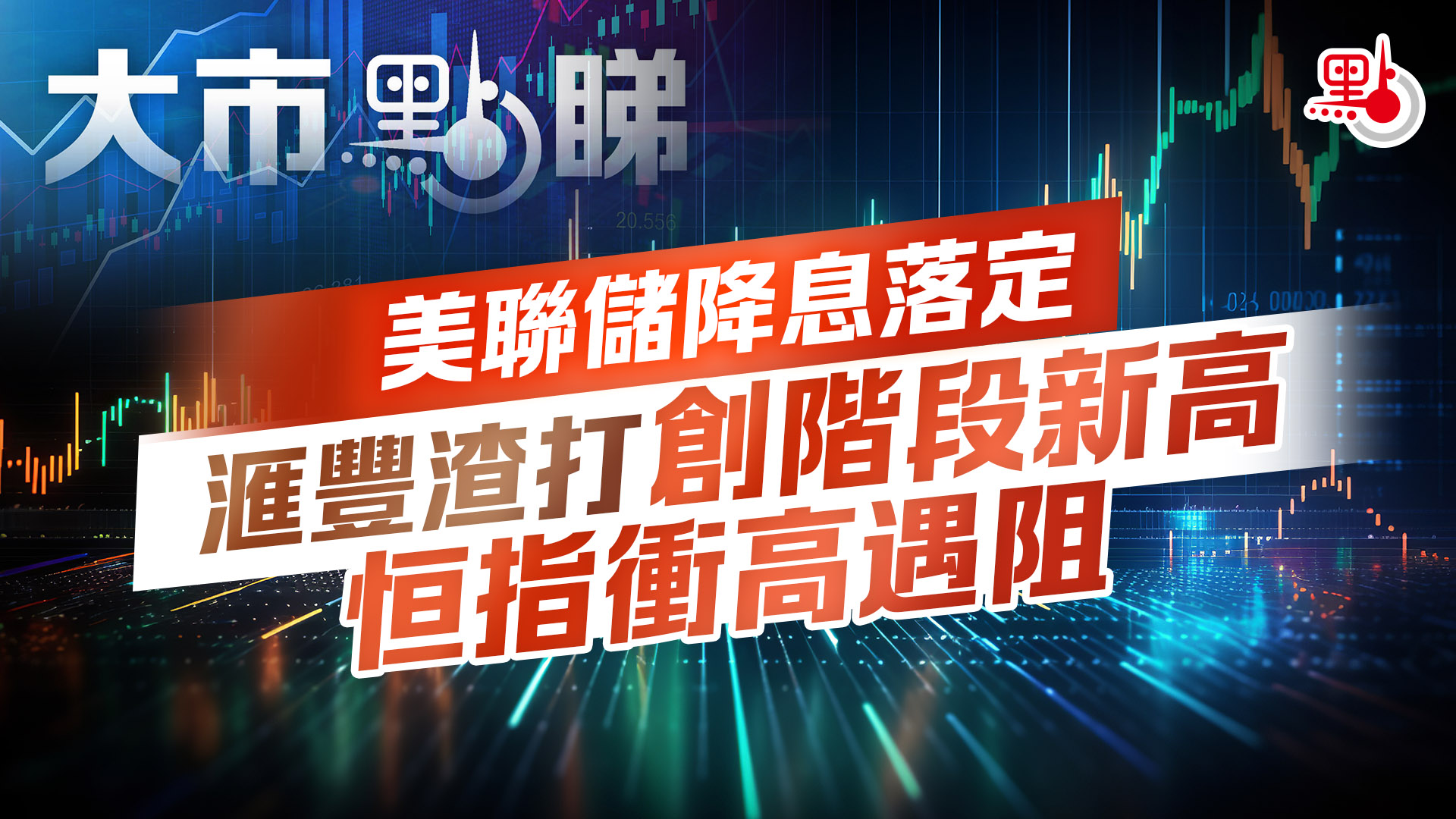 大市點睇|美聯儲降息落定 滙豐渣打創階段新高 恒指衝高遇阻