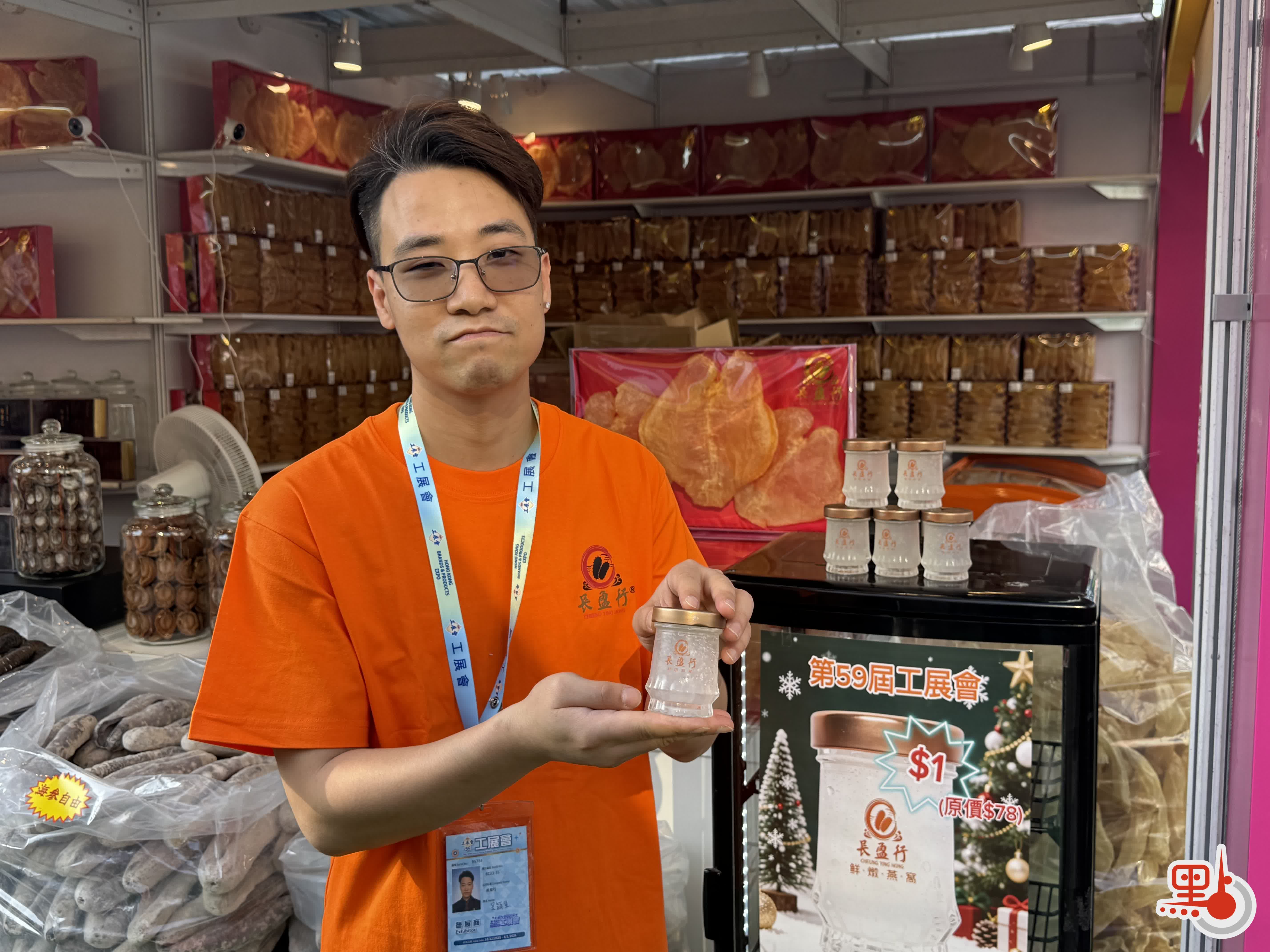 長盈行主售海味產品,今年是第6年參展,亦於工展會首8日推出1港元搶價值78港元的鮮燉燕窩,每日限量59份。