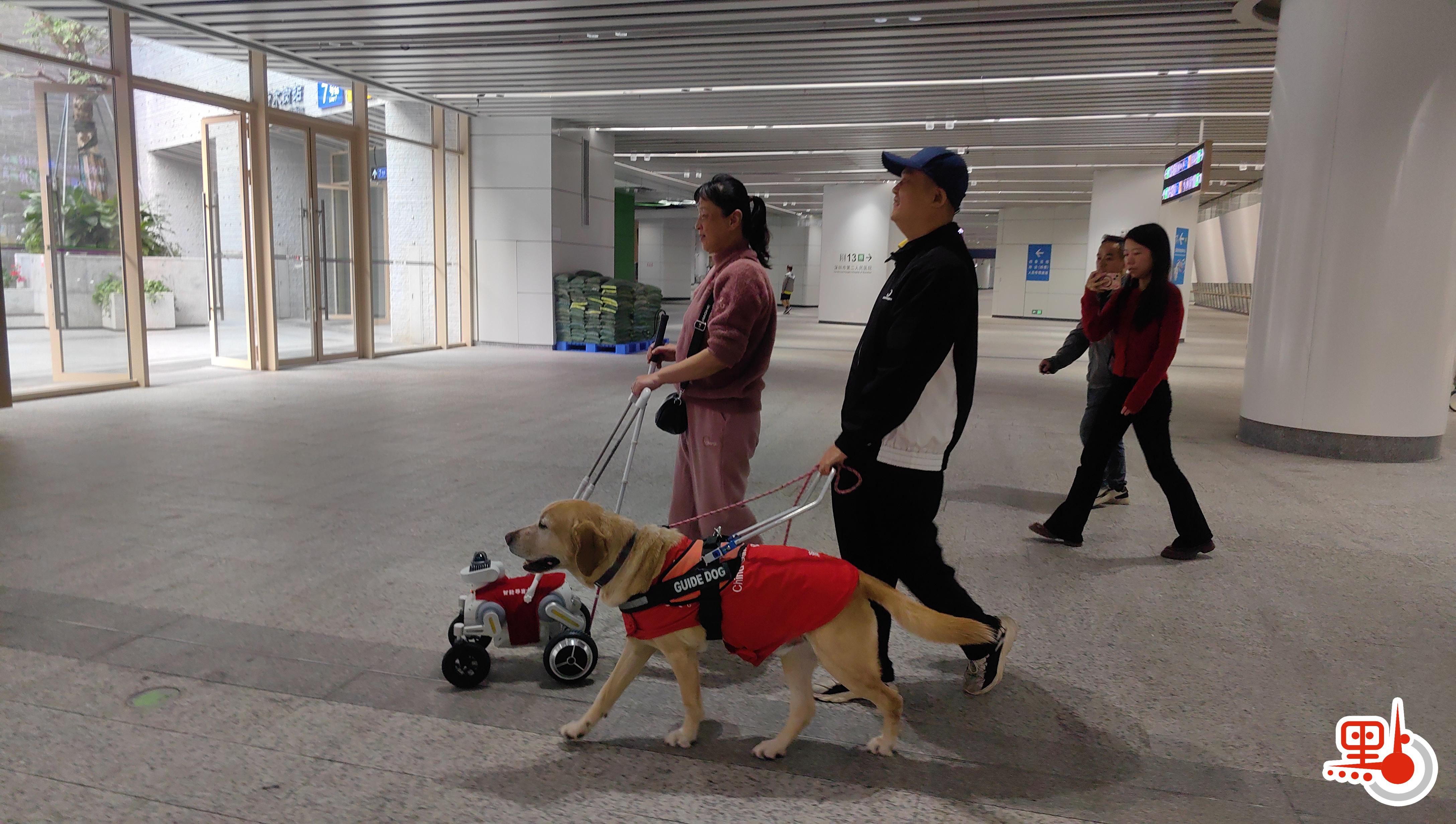 據工作人員介紹,黃木崗樞紐在13口、14口旁的無障礙垂直電梯處分別設置智能導盲犬服務點,目前已完成安全專項測試與實地檢驗合格,首月試用期間將設置專人配合視障乘客做好安全保障,試點成功後即可自動化投用,並在部分地鐵站點進行專項推廣。