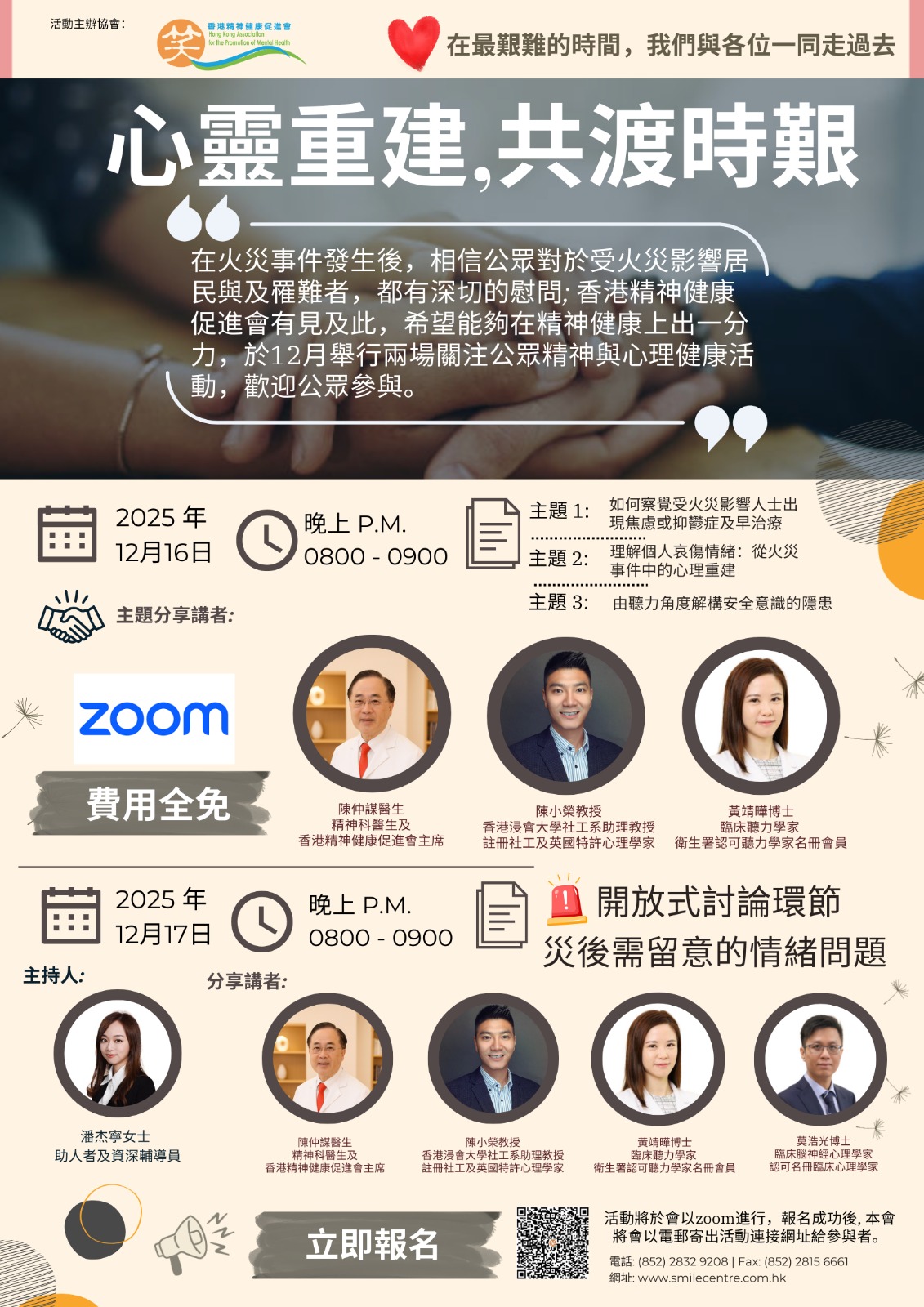 (有片)宏福苑五級火|精神健康促進會情緒支援 辦講座會談輔導災民
