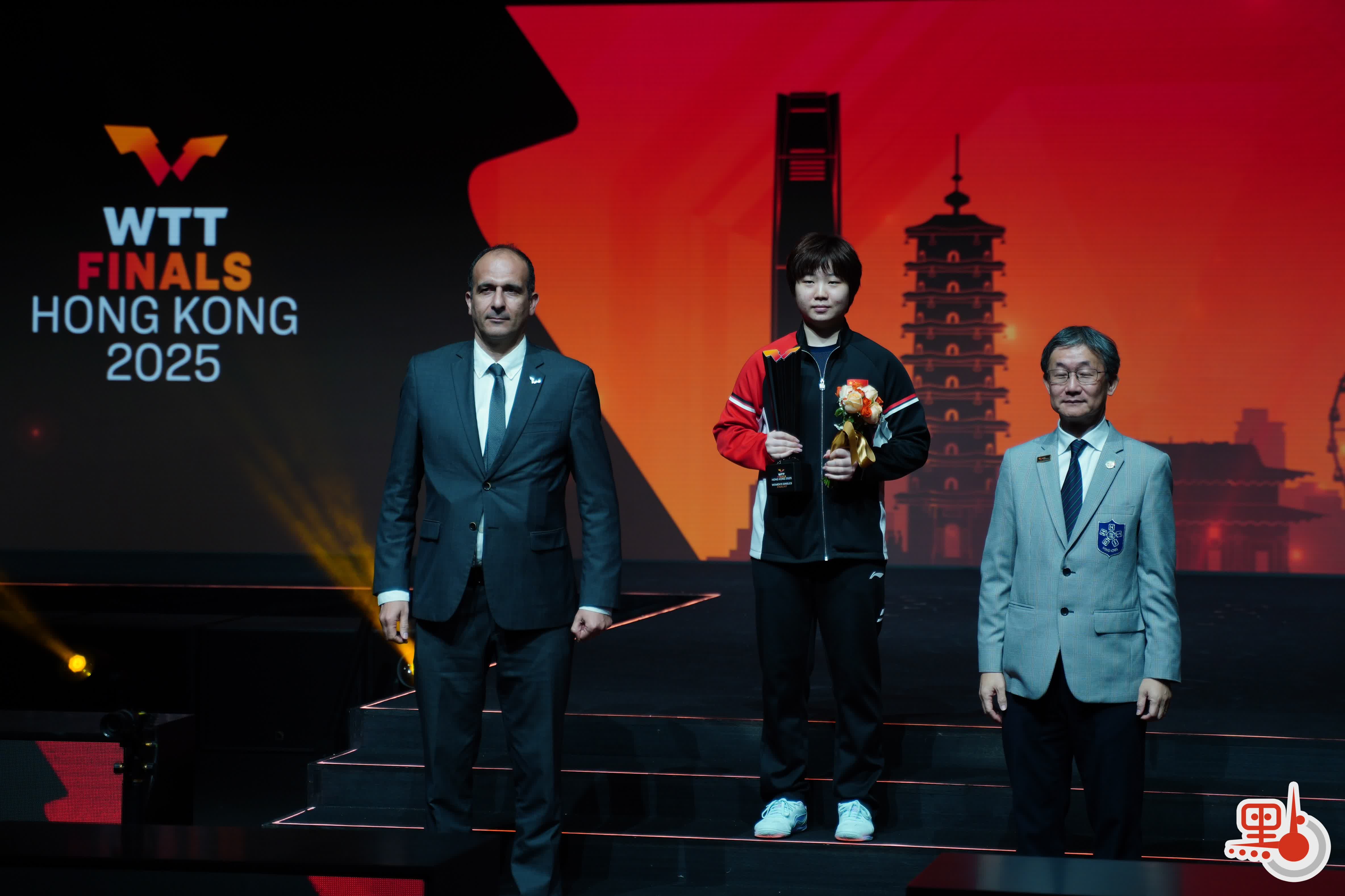 在女單比賽中,王曼昱以大比分4-2戰勝蒯曼,成功衛冕WTT總決賽女單冠軍。六局比分分別是:11-7、8-11、11-8、11-8、9-11、12-10。