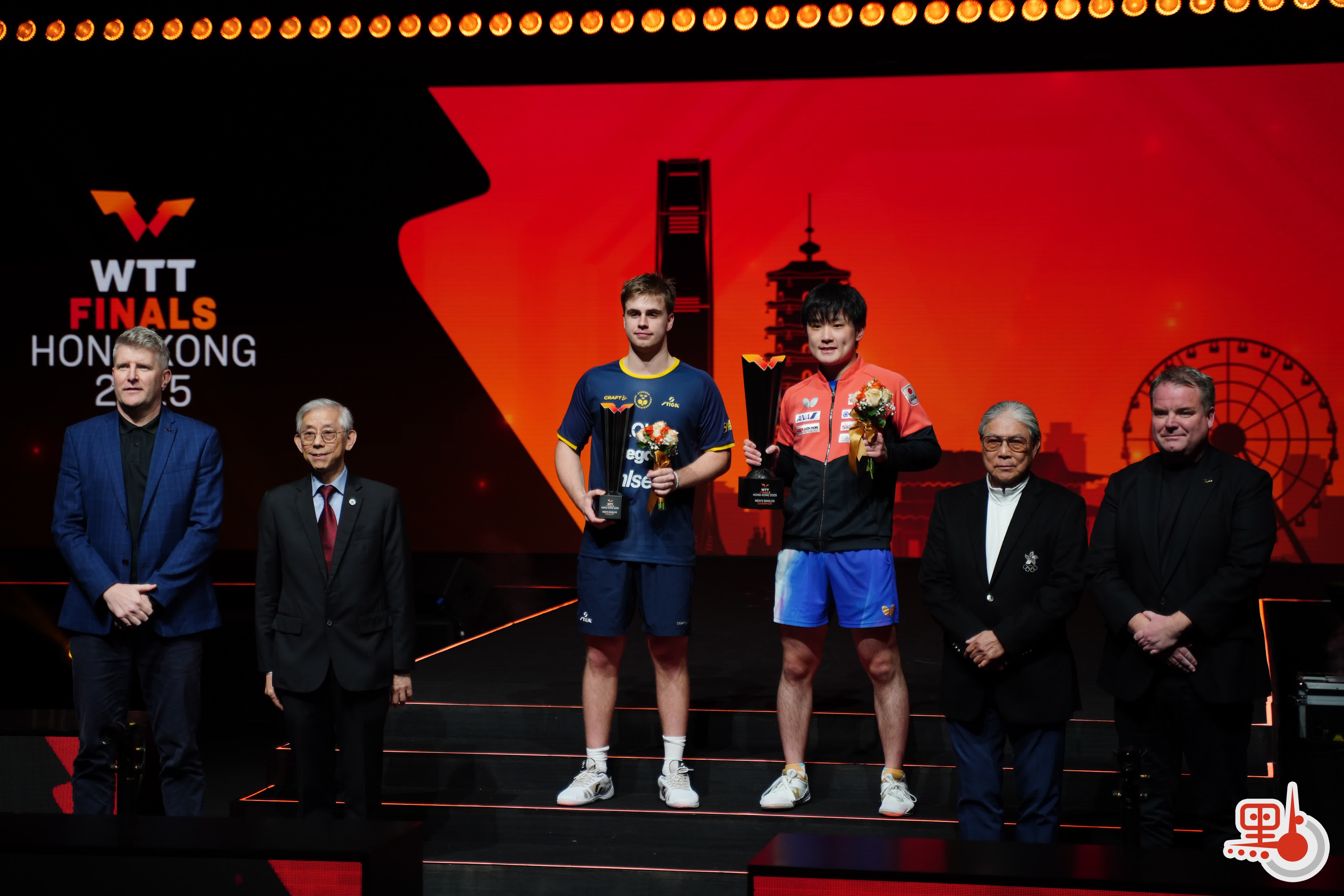 在男單比賽中,張本智和以大比分4-2戰勝莫雷加德,奪得男單冠軍。六局比分分別為:11-8、5-11、11-9、10-12、14-12、11-2。今屆WTT總決賽是張本智和第四次晉級男單決賽,此前三次他均以亞軍收尾,今次終於圓夢,成功奪得冠軍。