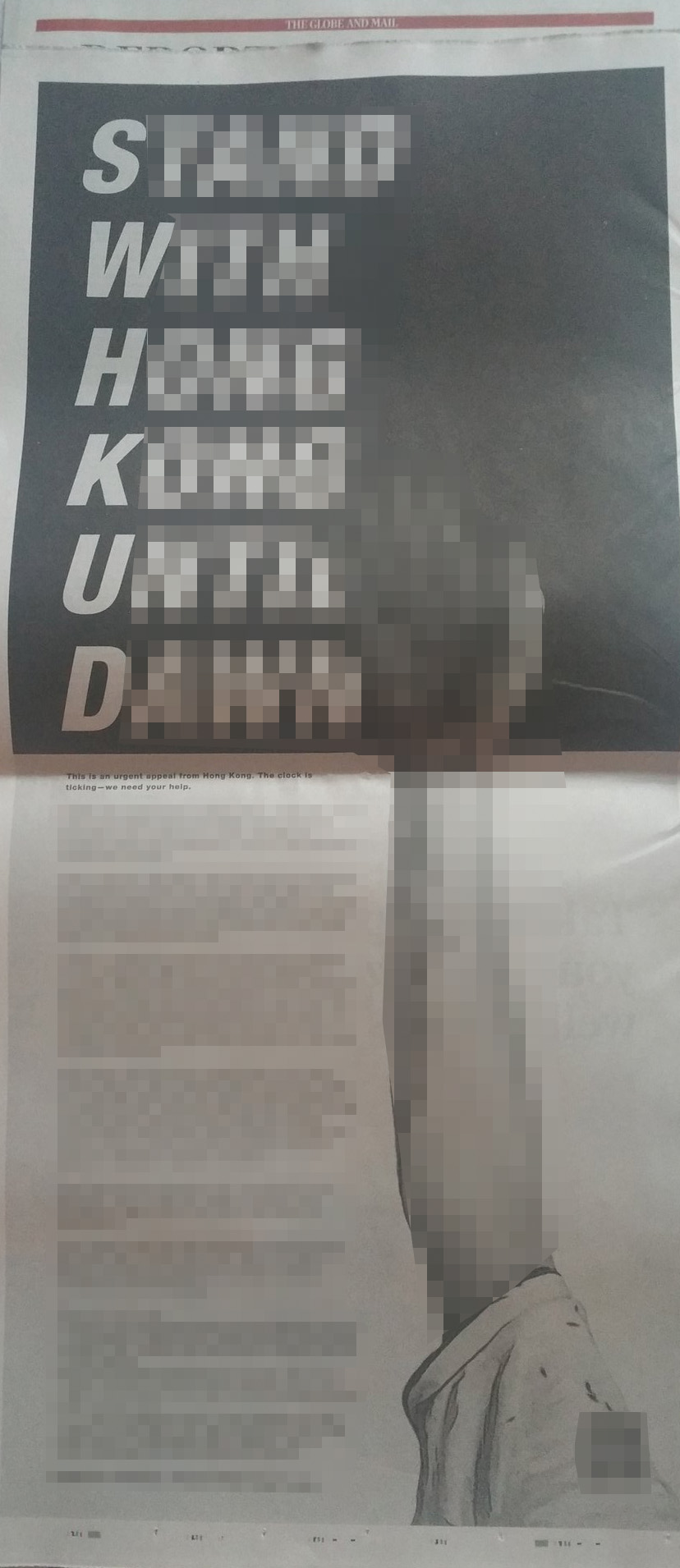 2020年5月24日《蘋果日報》頭版發起所謂「一人一信救香港」,請求時任美國總統特朗普出手反對並阻止香港國安法通過及實施,公然干預香港特區的內部事務。