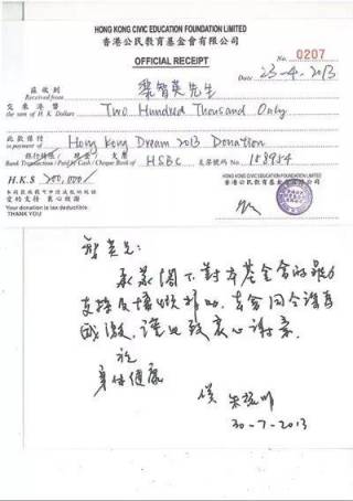 2014年7月21日,一位署名為「壹傳媒股民」的神秘人士向香港媒體披露了800多份黎智英與Mark Simon的郵件紀錄,曝光了黎智英的一些捐款和收款單據,當中包括黎向朱耀明開出20萬元支票,支票抬頭是「香港公民教育基金會」,而朱耀明則回信給黎智英,感謝他的「慷慨捐助」。