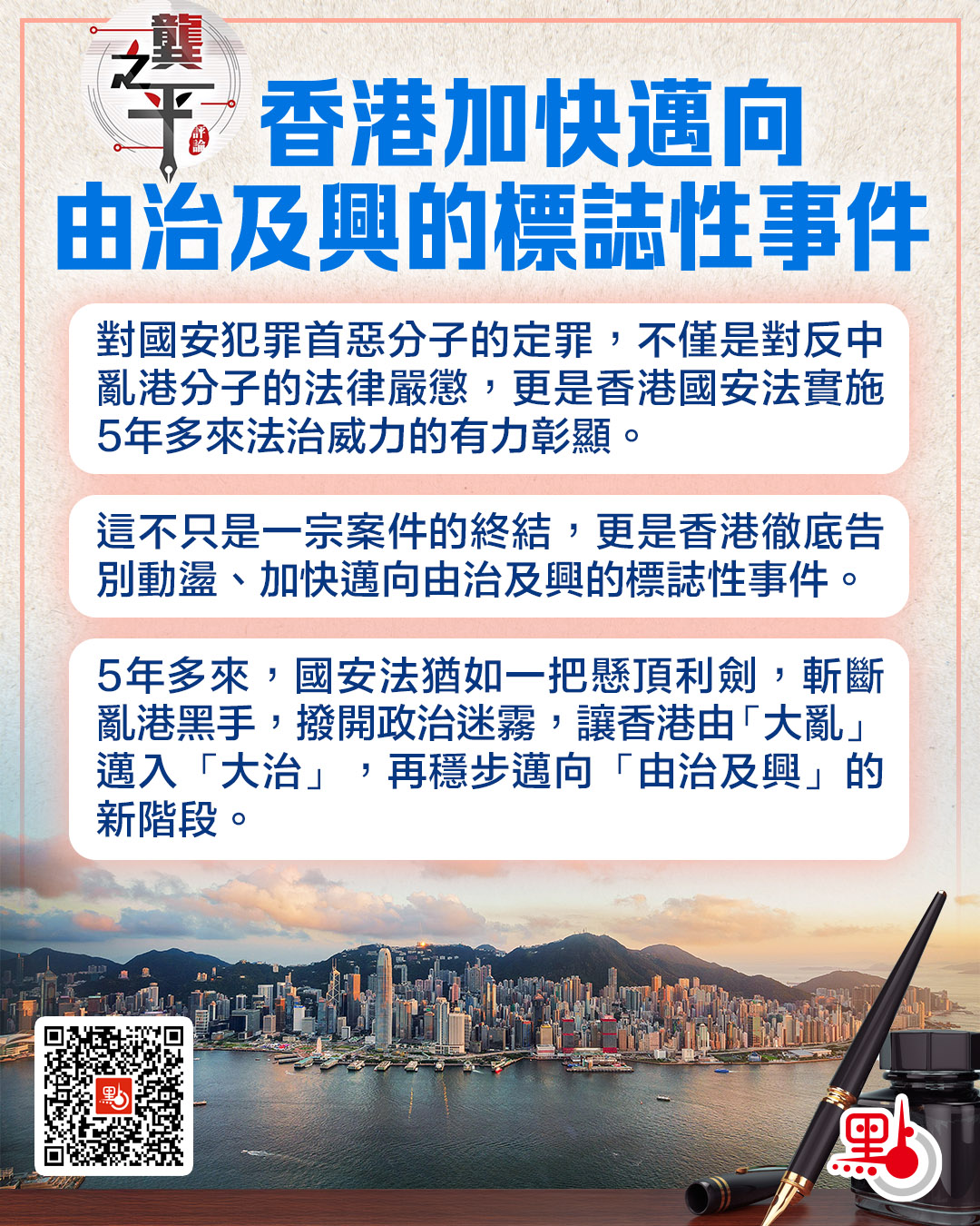 如果說黎智英案的審判彰顯了香港國安法「治亂世」的威力,那麼5年多來香港的發展成就則印證了這部法律「興香江」的價值。安全是發展的前提,香港國安法為香港帶來了穩定的社會環境,為經濟復甦、民生改善、國際地位提升注入了強大動力,推動香港從由亂到治邁向由治及興的新階段。