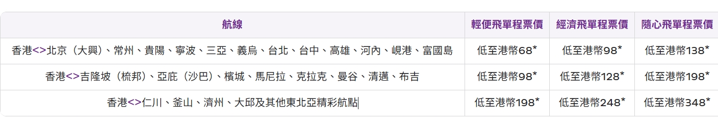 (有片)香港快運$68起機票開搶 逾30航點任揀(附連結)