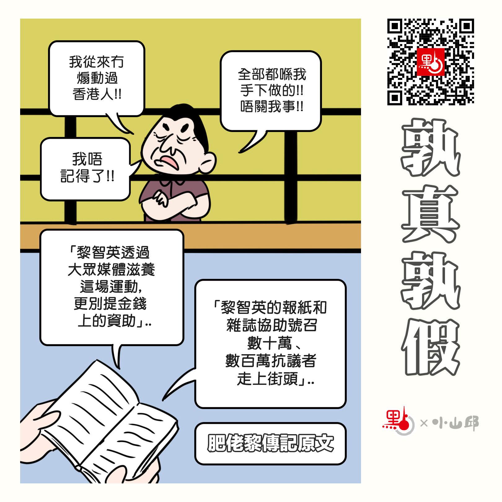 事實上,今年年中一本美化黎智英的所謂「傳記」書籍出版,就曾經提及「黎智英透過大眾媒體滋養這場運動,更別提金錢上的資助」、「黎智英的報紙和雜誌協助號召數十萬、數百萬抗議者走上街頭」,可見黎智英禍港多時,罪有應得。