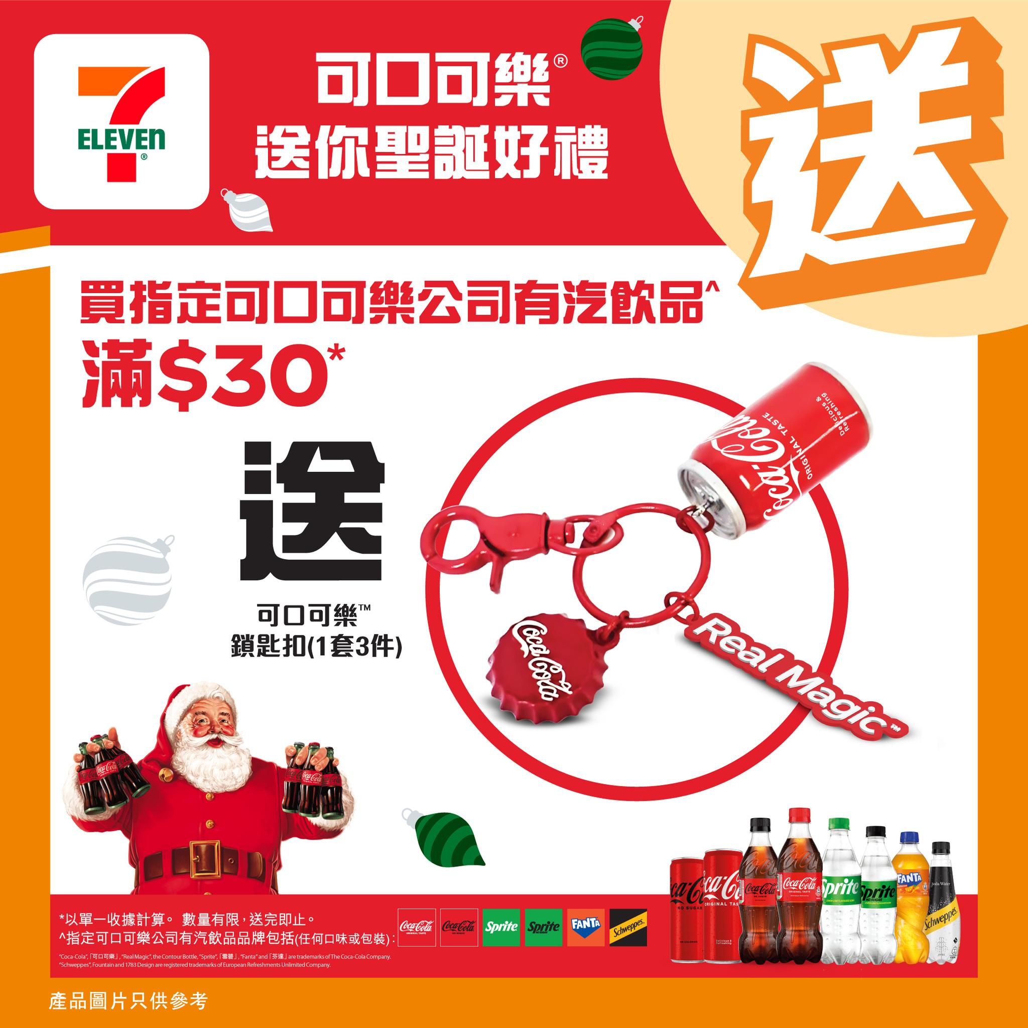 由即日起至12月30日來7仔買指定可口可樂公司有汽飲品滿$30,即送可口可樂鎖匙扣1套(1套3款),可以隨喜好組合成最喜愛的鎖匙扣,掛在自己手袋做裝飾又得,送給朋友仔做聖誕禮物都得。優惠有效日期由2025年12月17日早上7時至2025年12月30日。指定可口可樂公司產品包括可口可樂/無糖可口可樂/雪碧/無糖雪碧/芬達/玉泉系列410、500或888毫升膠樽裝及330毫升高罐裝。