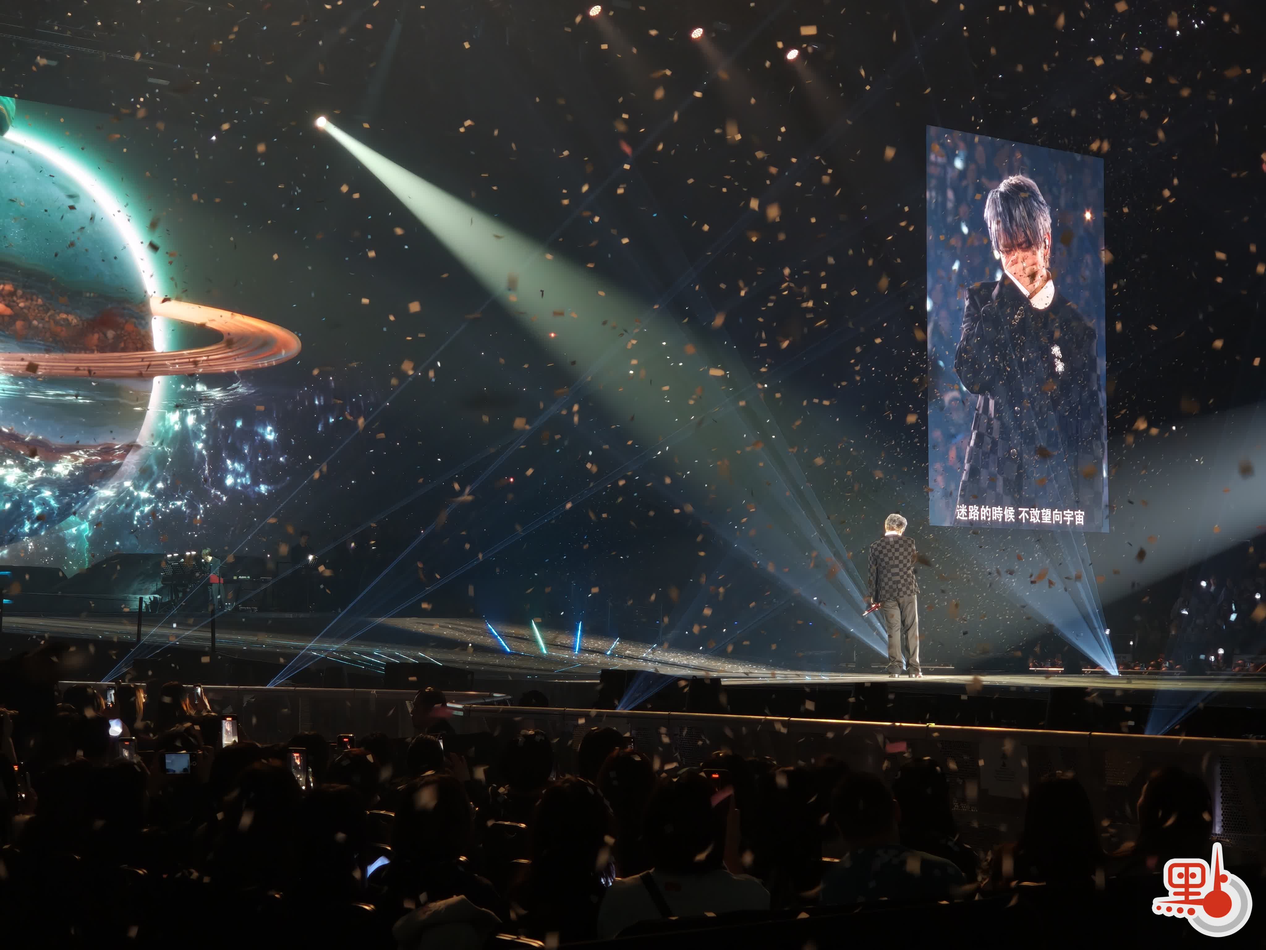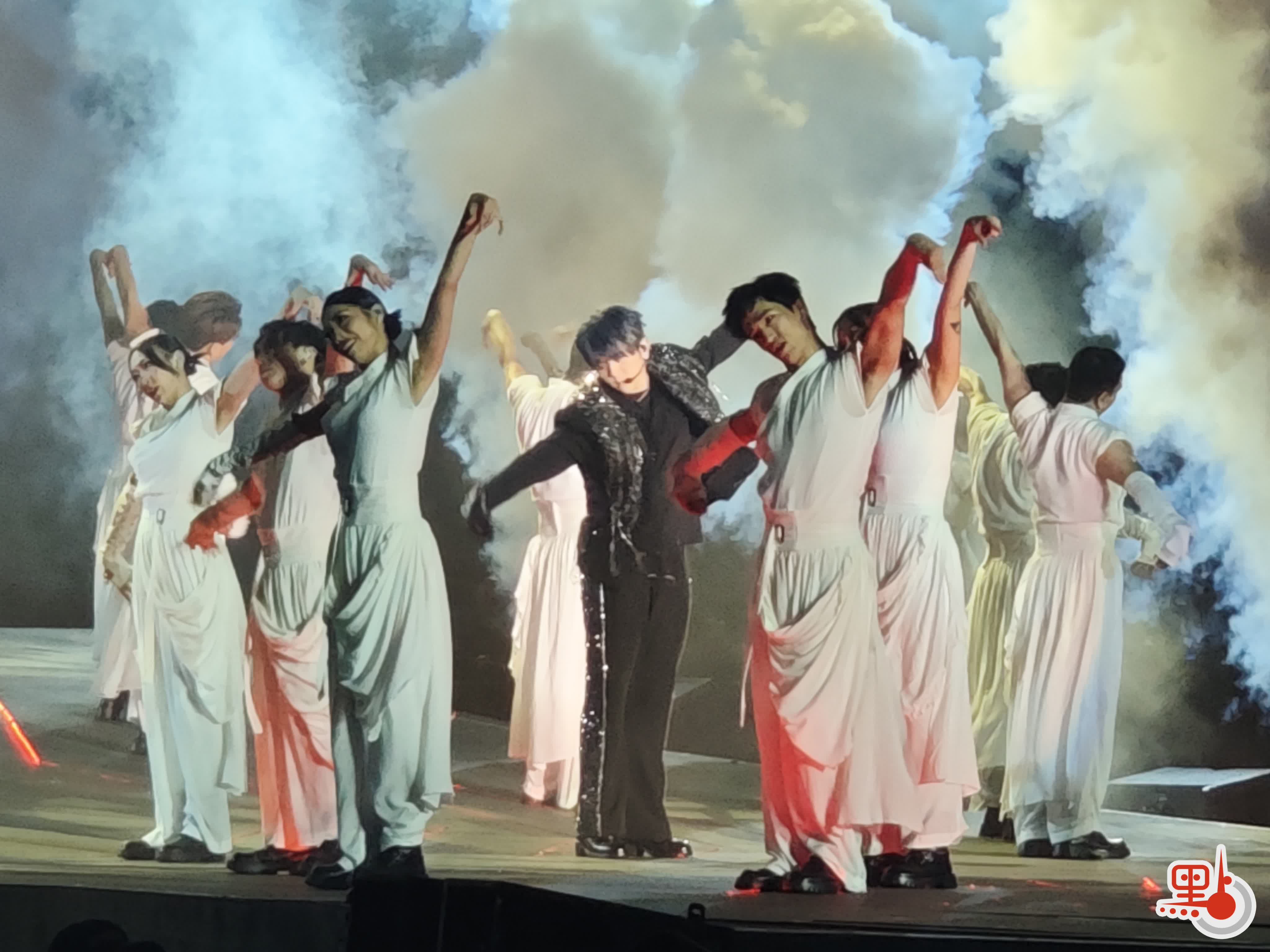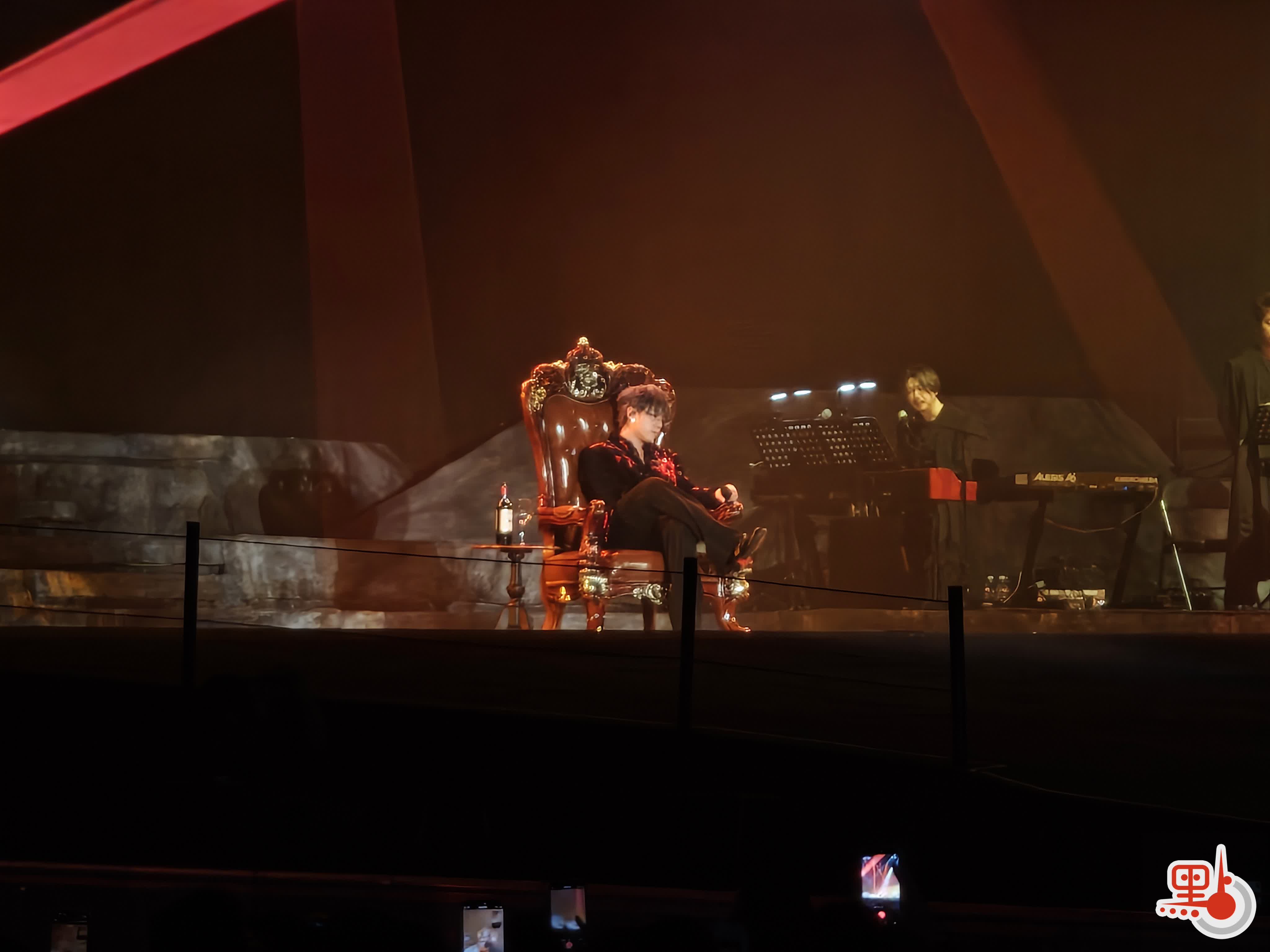 演出伊始,姜濤以一身黑色勁裝帥氣亮相,接連獻唱《Boulder》、《白果》及《Master Class》,瞬間點燃全場氣氛。隨後曲風轉向深沉,他演繹了《黑月》、《DUMMY》、《以父之名》以及首次參與作曲的《寂寞圓舞》。演唱《以父之名》時,姜濤更以MV同款「王座」登場,氣勢十足。